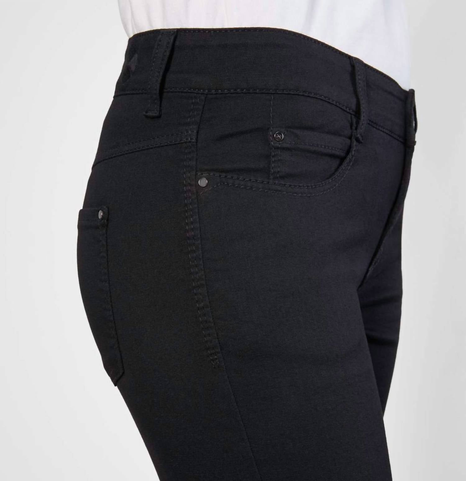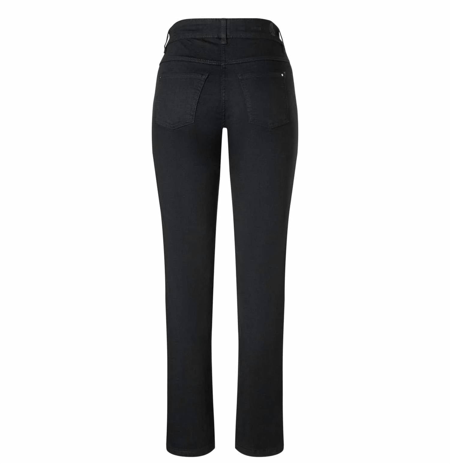 This classic straight leg jean has a perfect fit and goes with just about everything. Experience unparalleled comfort and style with MAC's Dream Straight Leg Stretch Denim Jeans in classic black. These jeans feature a feminine, slim-leg silhouette with a comfortable waist and a functional 5-pocket design. Crafted from hyper stretch denim, they boast a composition of 48% Cotton, 48% Polyester, and 4% Elastane, offering a flattering shaping effect. Closure is secured with a zip, and care is easy with a 30° gentle wash cycle and laying flat to dry recommendation.