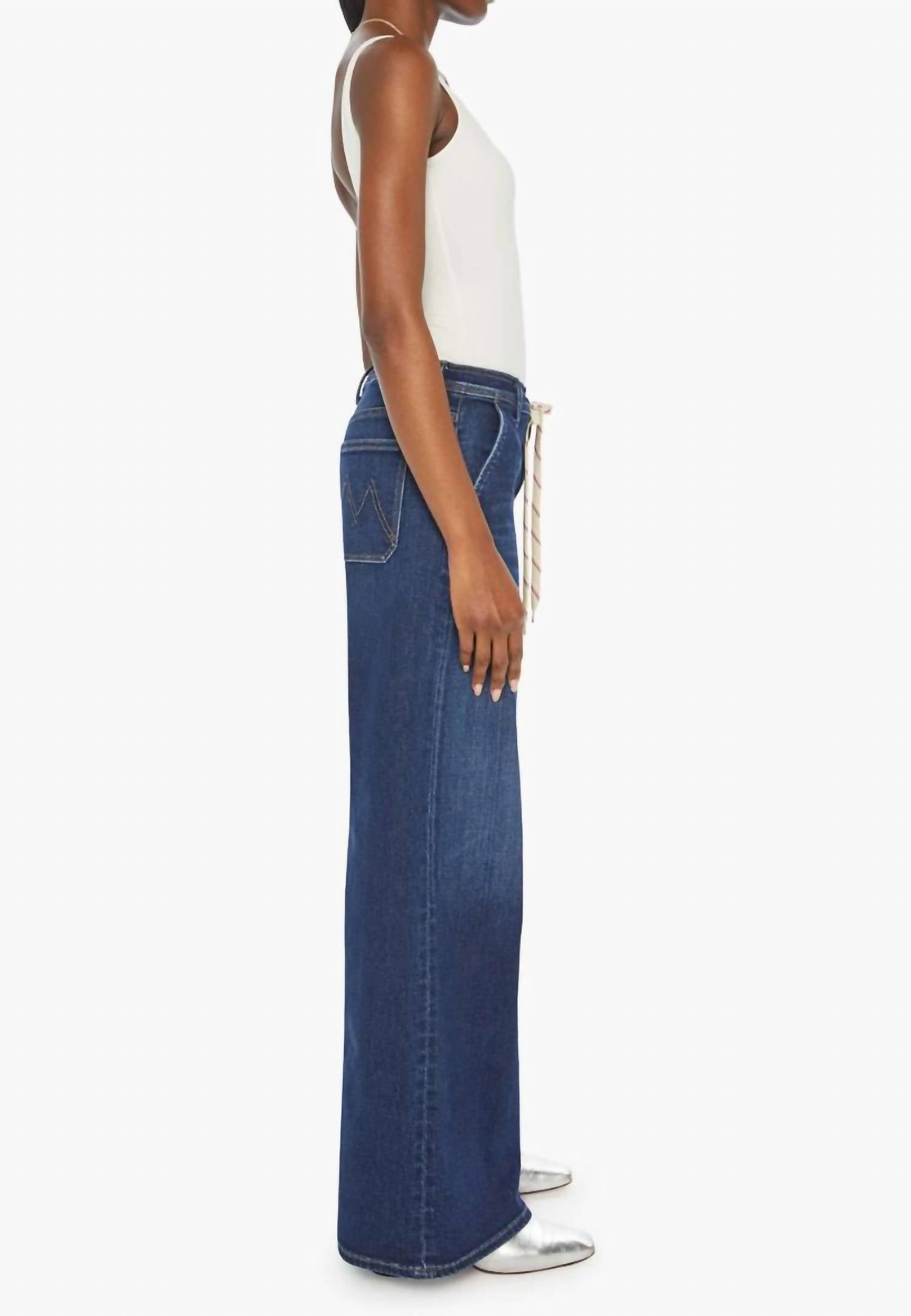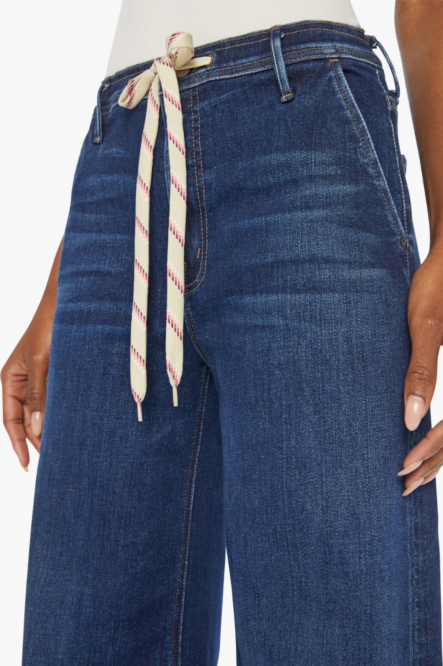 Pair these straight leg jeans with flats, sandals or even heels! You can't go wrong. Discover the Drawn Undercover Prep Sneak Jeans by Mother, featuring a relaxed fit and high-rise waist with drawstring for easy comfort. These women's jeans are crafted from a cotton blend, ensuring durability and stretch with a composition of 78% cotton, 16% modal, 4% polyester, and 2% elastane. The pants boast a 32-inch inseam and a straight leg style with a dark wash and subtle whiskering and fading details. Closure: Zip closure with side-slit pockets included. Care: Machine wash and tumble dry for effortless upkeep.