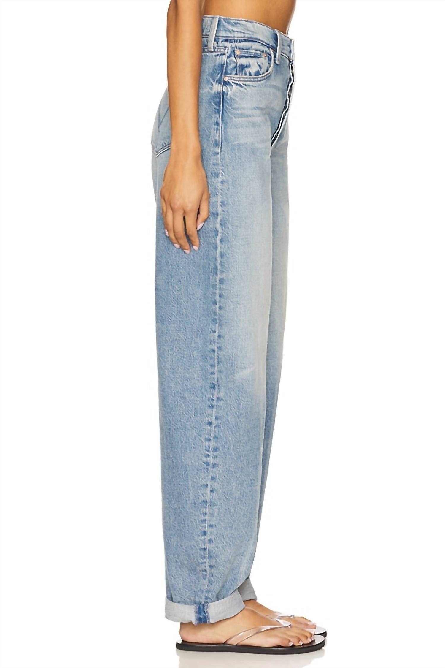 Pair these straight leg jeans with flats, sandals or even heels! You can't go wrong. Meet the Fangirl Button Skimp Cuff Jeans by Mother, designed for the ultimate streetwear style with a light wash and a nod to summer holiday festivities. Crafted from 100% cotton, these jeans provide a relaxed fit with a high-rise waist and a comfortable 10.5-inch rise. The solid, straight-leg silhouette features pockets and a convenient zip closure. Care for your denim effortlessly with machine wash and tumble dry instructions.