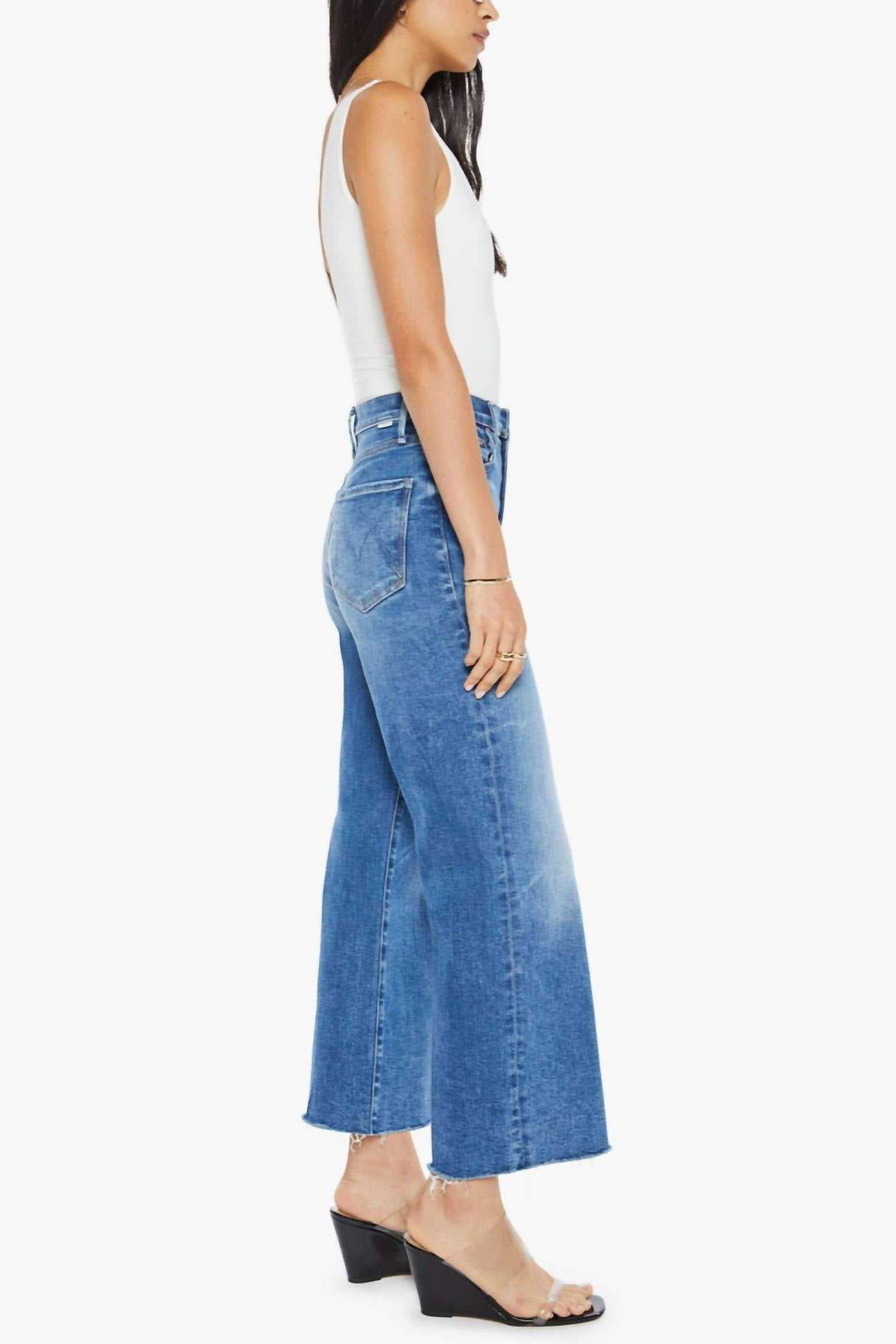 Pair these straight leg jeans with flats, sandals or even heels! You can't go wrong. Introducing the Maven Ankle Frayed Jeans by Mother, a striking addition to your summer streetwear collection in Denim Blue. These high-rise, loose-fit jeans feature a wide leg with an ankle-length inseam and a fashionable frayed hem, crafted from a premium Cotton Blend (78% Cotton, 16% Modal, 4% Polyester, 2% Elastane). Made in Los Angeles utilizing fine imported materials, these jeans include pockets for practicality and a secure button closure. Care for them with a machine wash and tumble dry to maintain their medium wash finish.