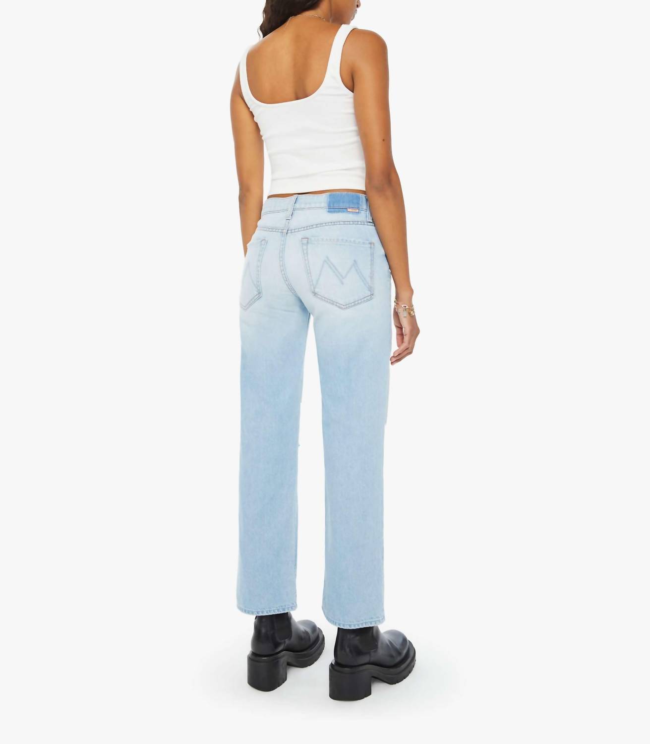 These must-have jeans are fit to perfection. Introducing the Mid Rise Rambler Zip Flood Jeans by Mother, perfect for any casual wardrobe update. These light wash, straight leg jeans are crafted from 80% cotton and 20% post-consumer recycled cotton, making them both stylish and eco-friendly. With a regular fit and a convenient zip closure, they boast a mid-rise waistband and a practical 29.75" inseam. Designed for easy care, simply machine wash and tumble dry, making them ideal for travel and summer streetwear occasions.