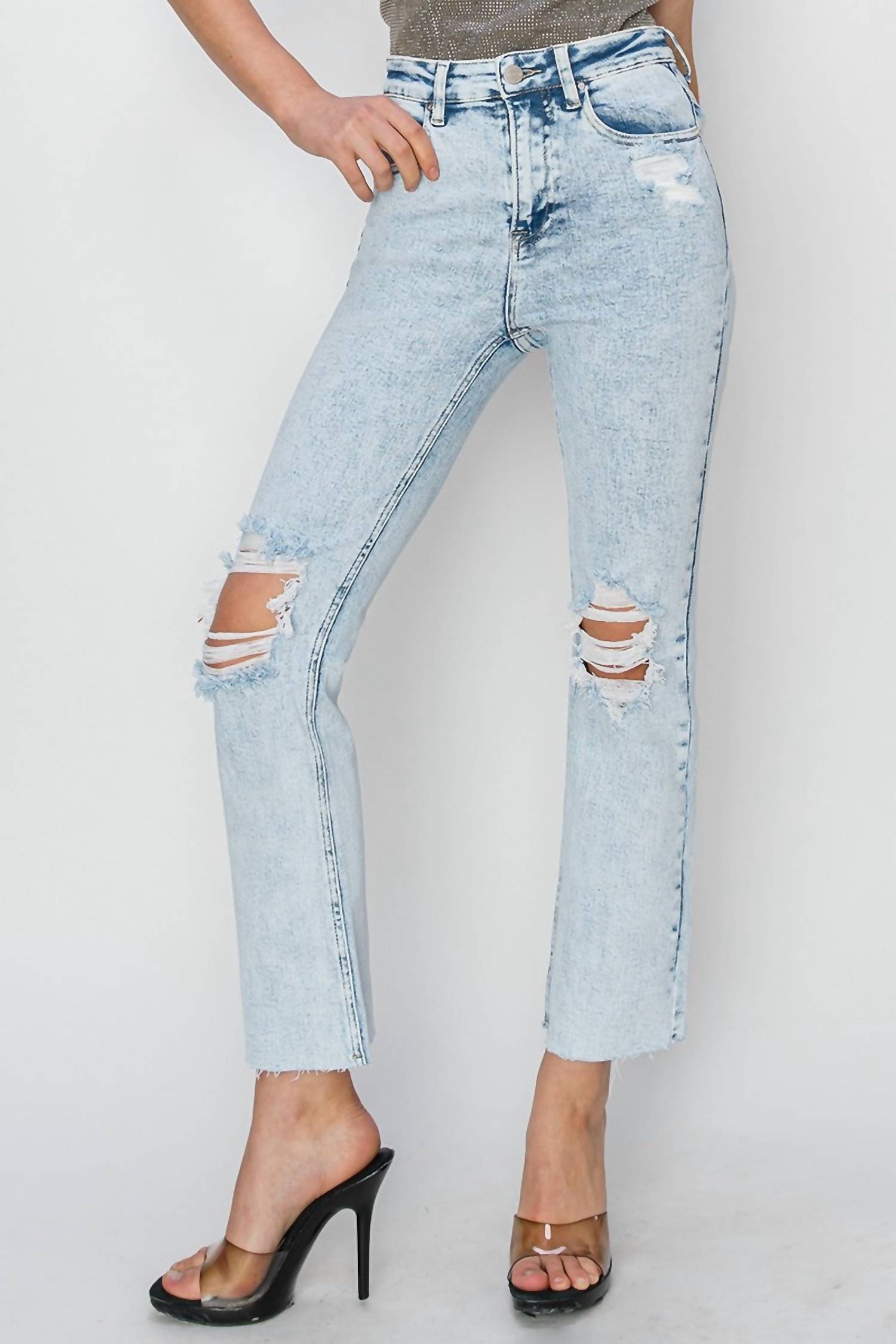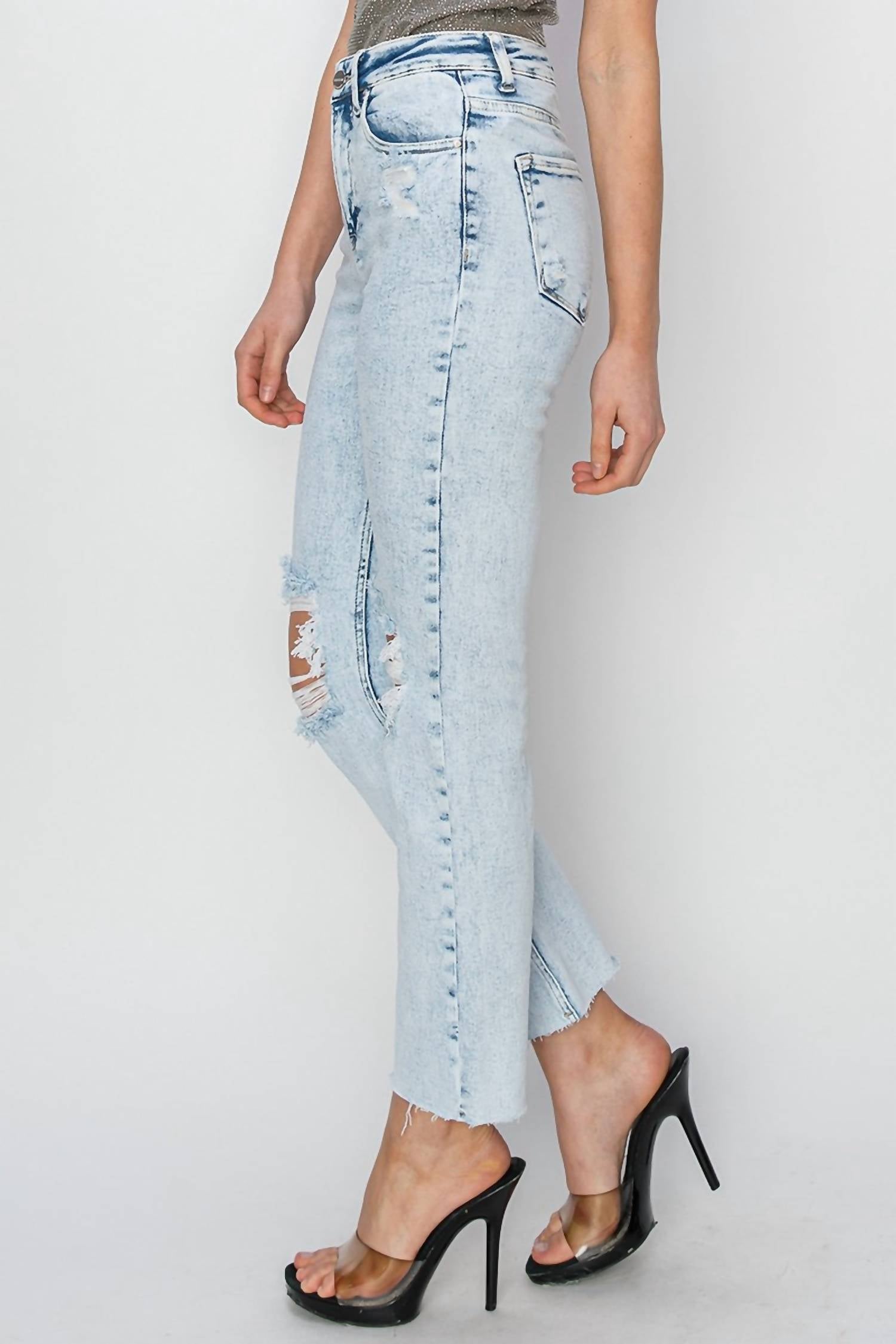 Risen - High Rise Knee Distressed Ankle Jeans