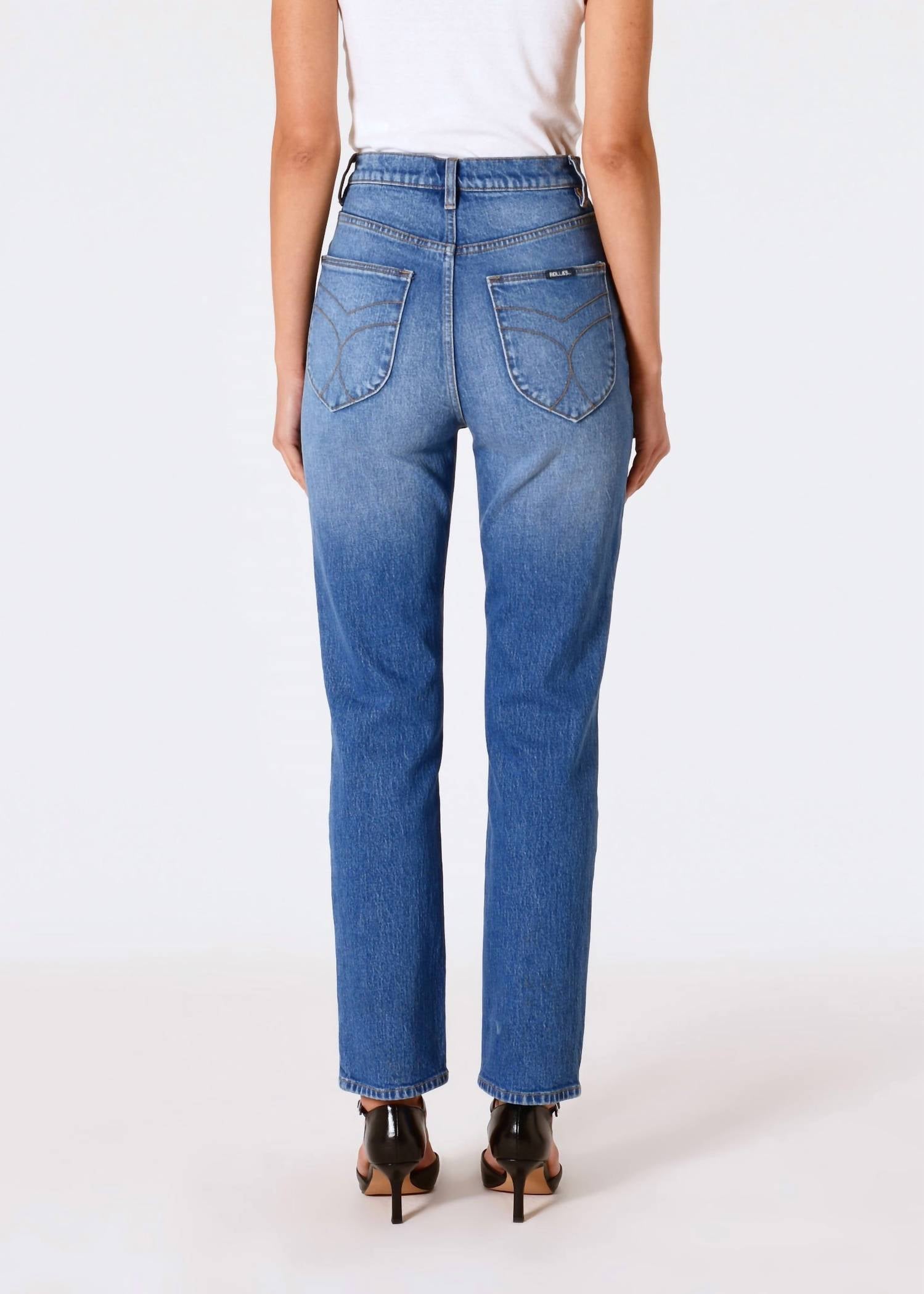 This classic straight leg jean has a perfect fit and goes with just about everything. Step out in style with the Loulou Straight Jeans by ROLLA'S, crafted in a chic Iris Blue medium wash. These jeans boast a high rise of 11.8 inches and a slim fit with a straight leg that complements a variety of body types. Made from a comfortable cotton blend, they feature both a button closure and zipper for convenience. Ideal for spring vacations, this solid pattern denim effortlessly channels 90s fashion trends.