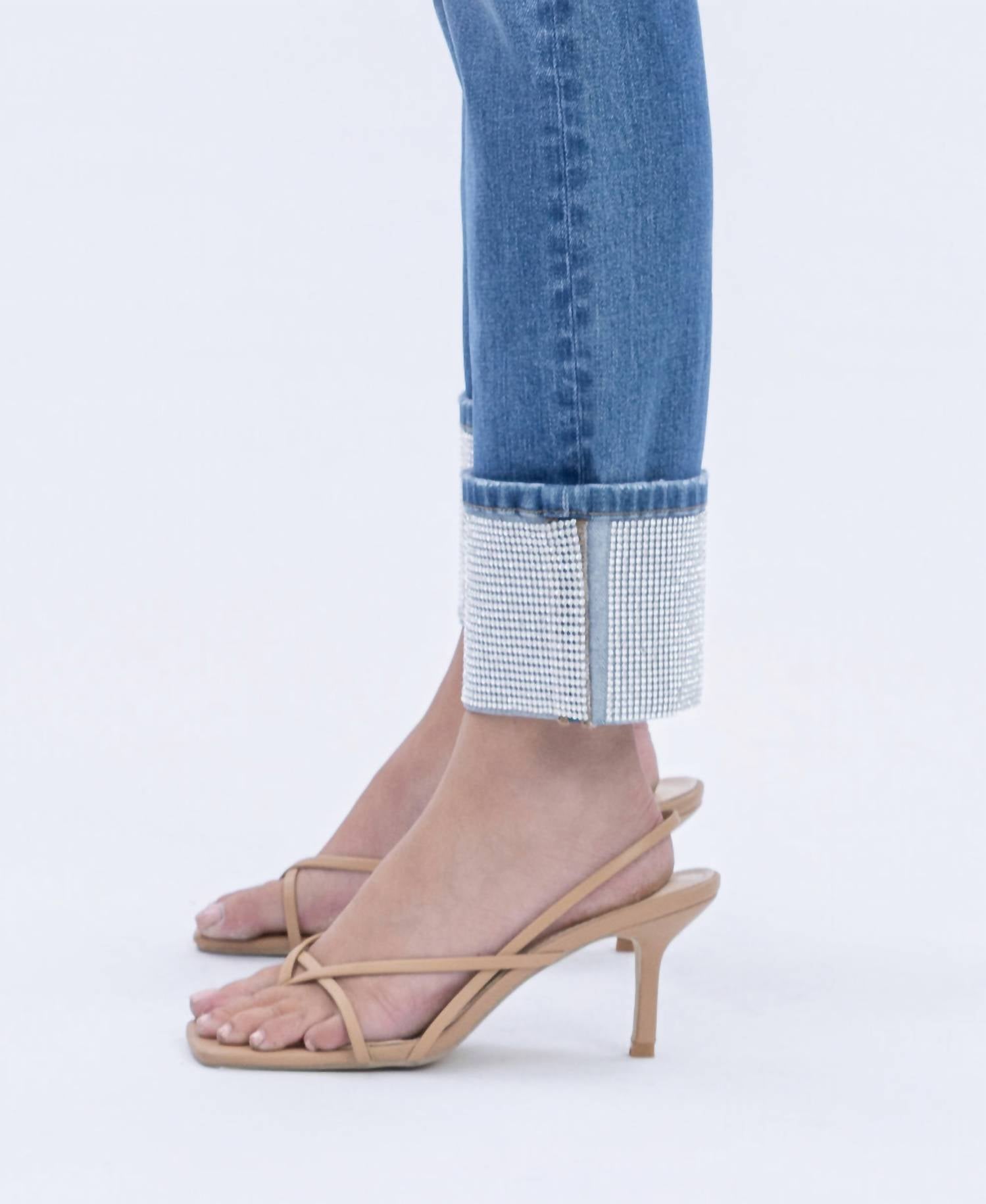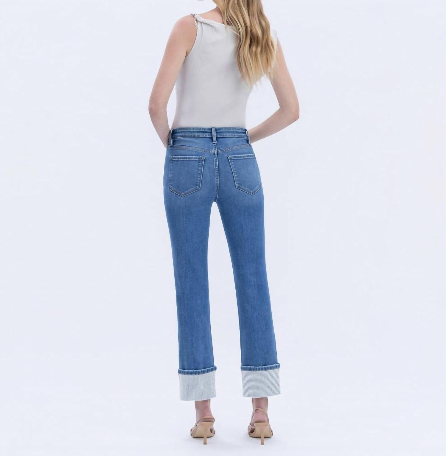 Vervet By Flying Monkey - High Rise Rhinestone Cuff Slim Straight Jeans