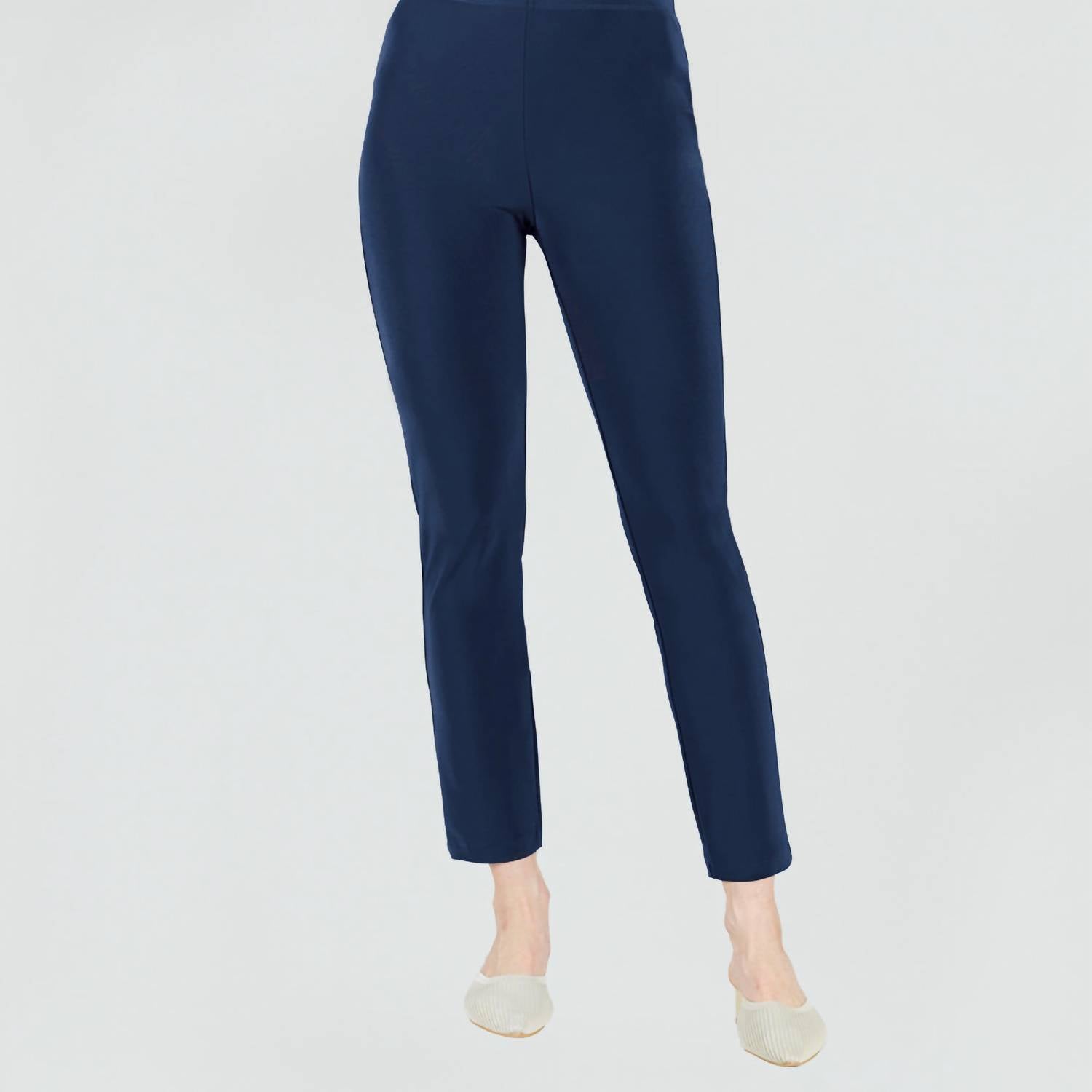 A perfectly tailored straight leg that you'll want in every color! Introducing the Signature Straight Leg Pant by CLARA SUNWOO in a sophisticated navy shade, designed for women seeking elegance and comfort. These pants feature a sleek straight leg hem with a minimal flare and a 1-inch pull-on elastic waistband. Composed of 70% Polyester, 20% Rayon, and 10% Spandex, this ultra-lightweight knit fabric from the USA is both breathable and wrinkle-free. Easy care with a machine wash and line dry, these pants fit true to size with a relaxed silhouette that flatters any figure.