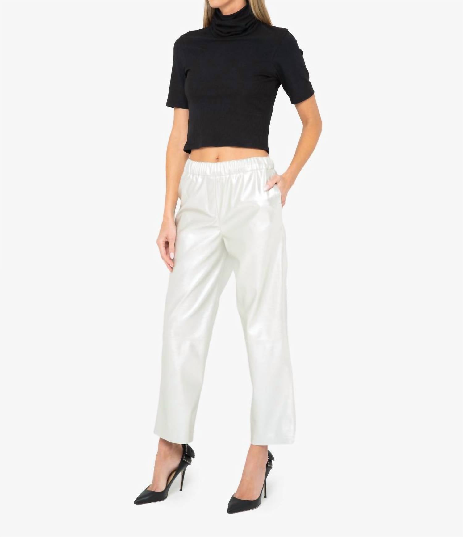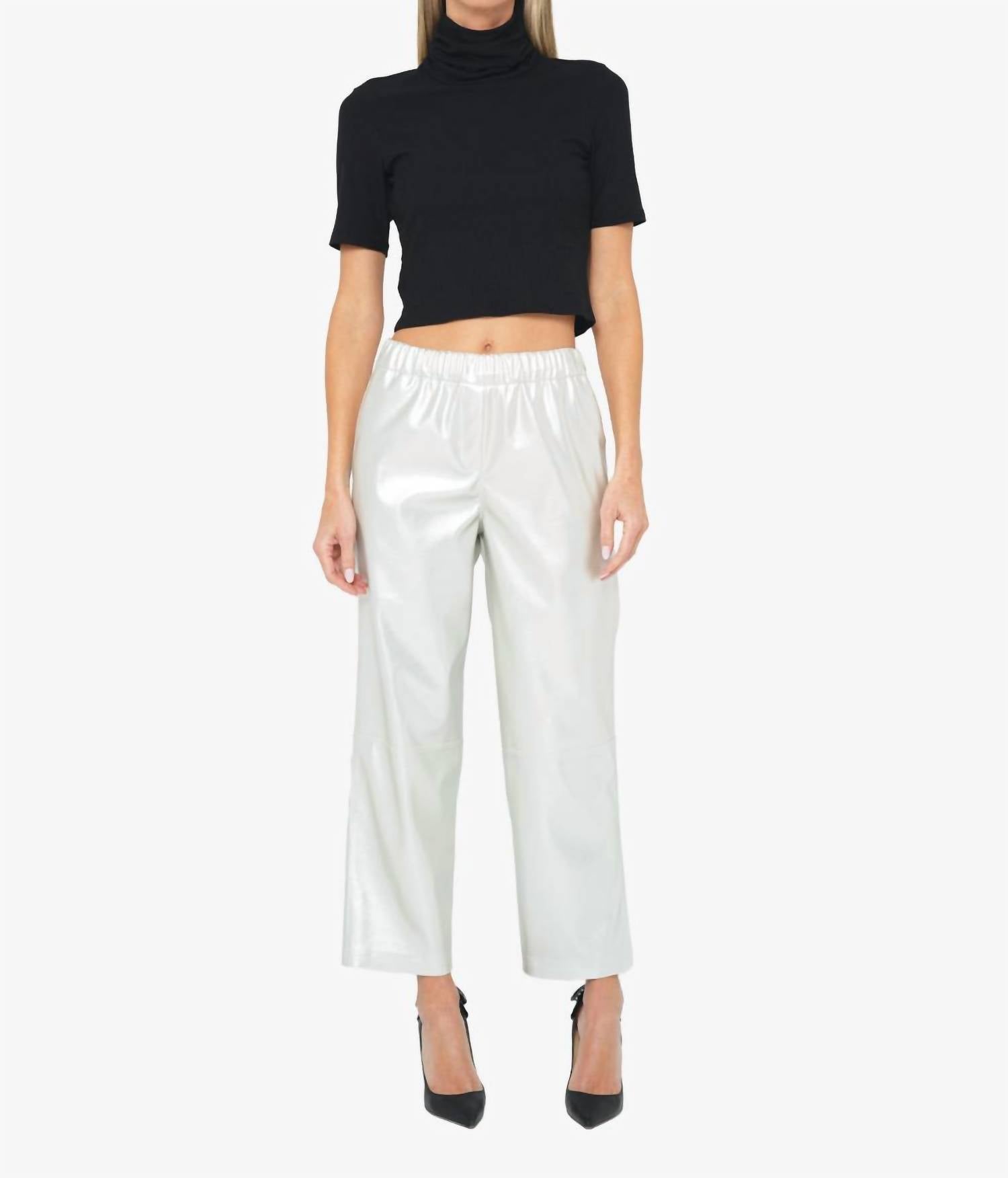 This straightleg pant is both stylish and comfortable. Did we mention the fit is perfection? Experience effortless elegance with the Luca Mid-rise Pant by JBQ, a relaxed-fit piece that defines quiet luxury. Crafted from 100% polyester, these ankle-length pants feature a straight leg for a sophisticated silhouette and an elastic waistband for easy wear. Made in the USA with imported materials, these mid-rise pants in a striking silver shade are perfect for a dinner party setting. Care instructions include machine washing cold, ensuring durability and easy maintenance. Model is 5'9" and wearing a size small.