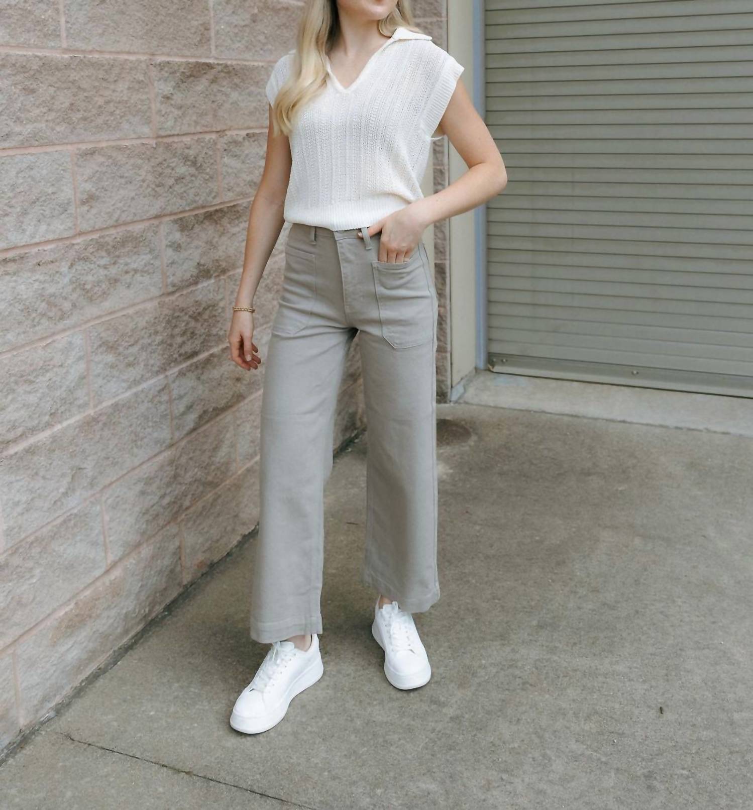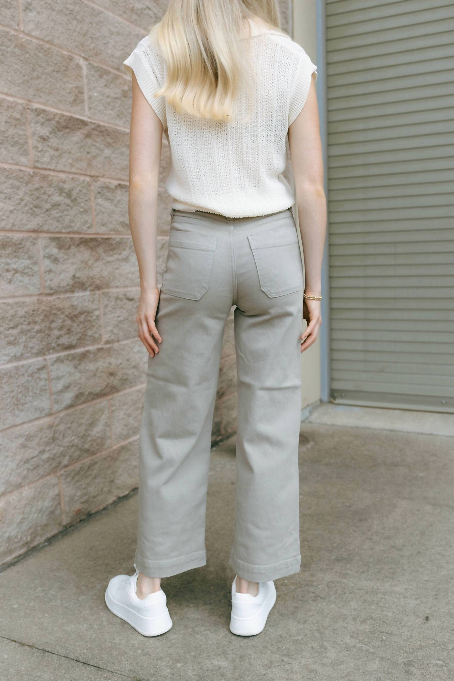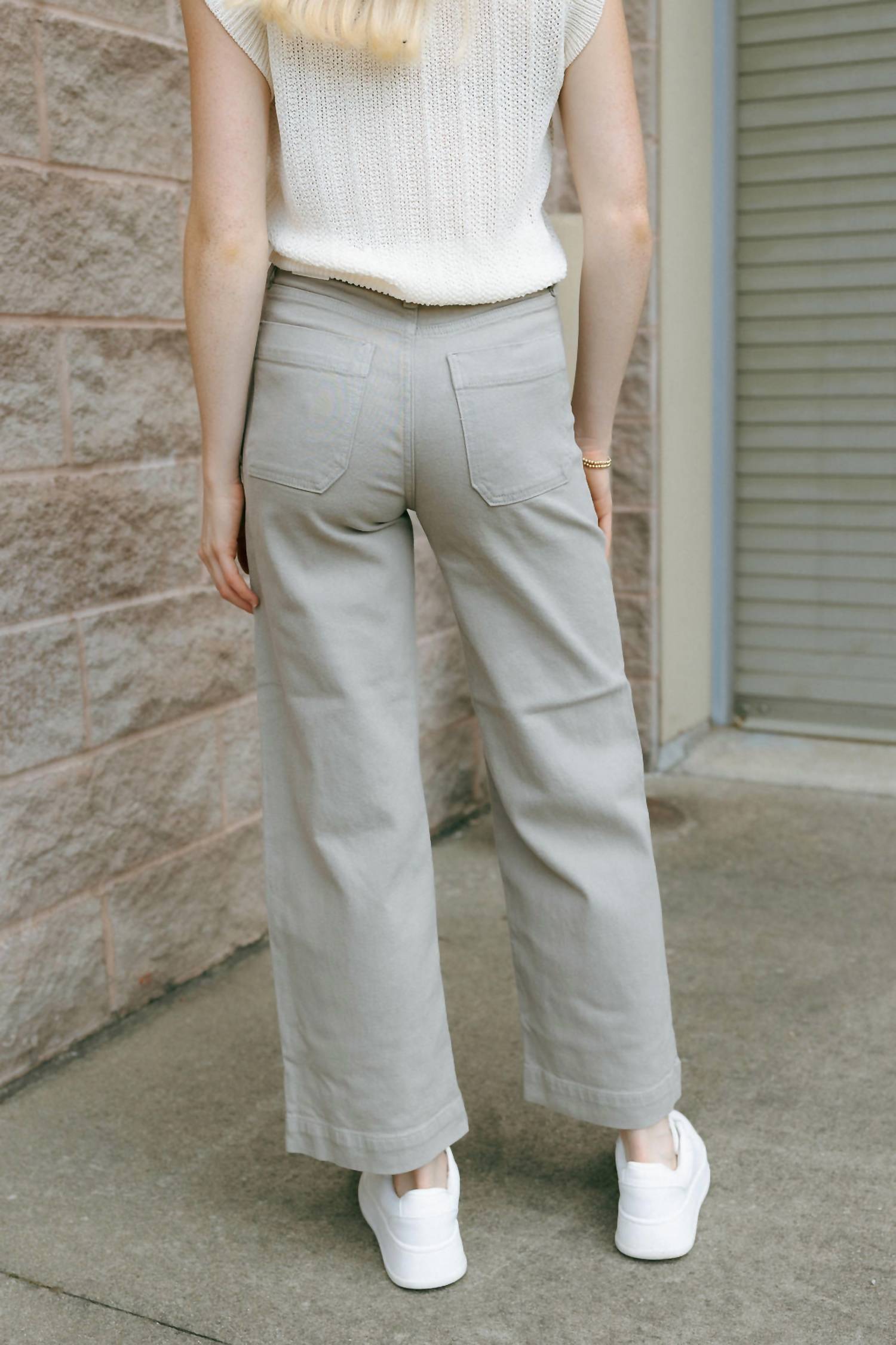 This straightleg pant is both stylish and comfortable. Did we mention the fit is perfection? Introducing the Utility Pant by JUST BLACK DENIM, designed in a stylish Moonstone hue. These straight-leg pants feature a regular fit with a high-rise waist and cropped length, measuring 38.5” with a 27.5” inseam. Crafted from a blend of 96% cotton, 3% elasterell, and 1% spandex, they include practical front and back pockets. Closure: Button and zip.