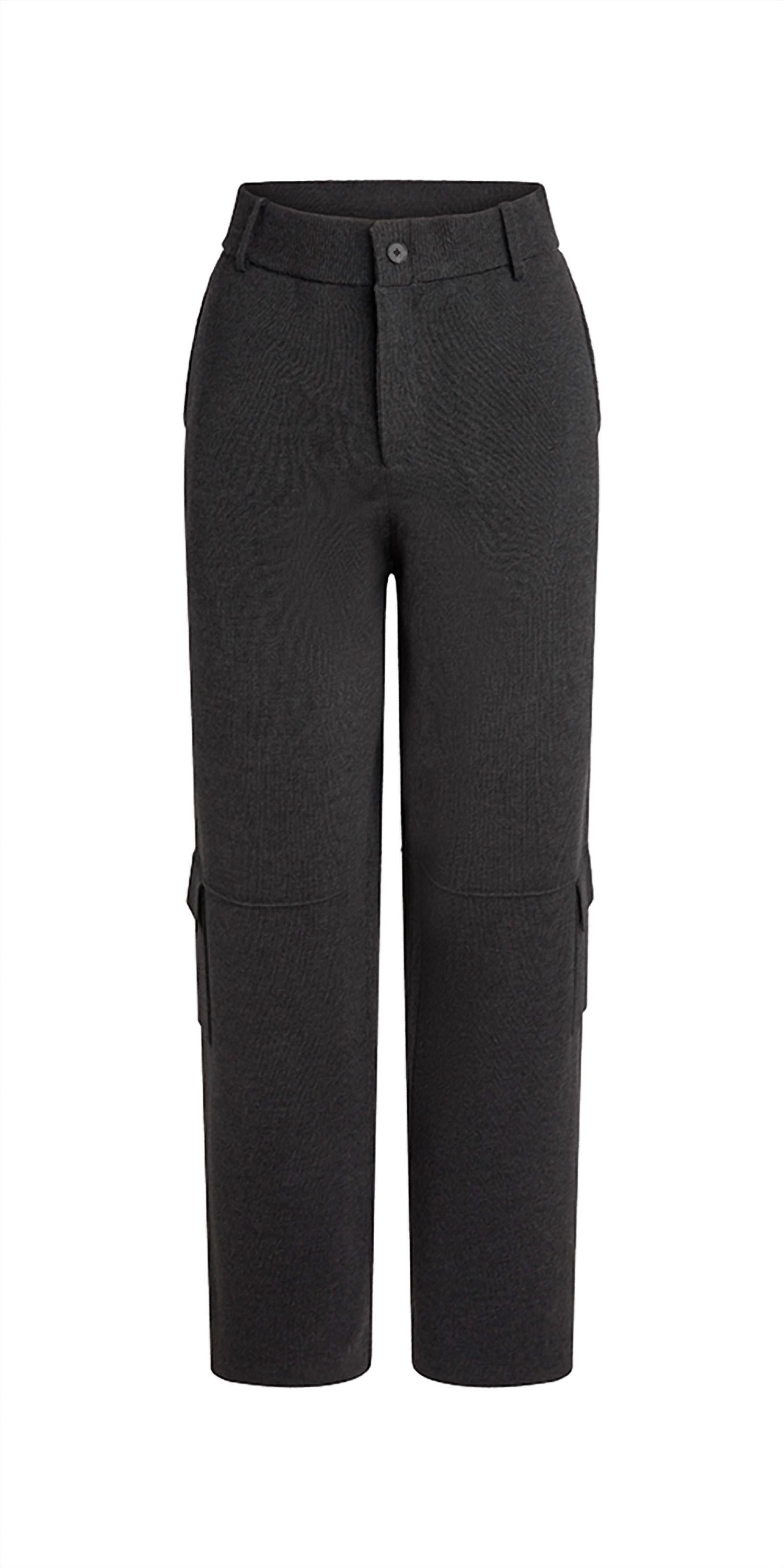 This straightleg pant is both stylish and comfortable. Did we mention the fit is perfection? Introducing the Knit Cargo Pants by Aya Muse, designed with a relaxed straight-leg fit for a blend of style and comfort. Made from a luxurious wool blend consisting of 50% Wool and 50% Acrylic, these pants feature high-rise waist and practical utility with side seam and cargo pockets on the lower leg. They are finished with a zip and button closure for a secure fit, perfect for adding a cozy touch to your wardrobe. Care instructions recommend machine washing; these pants are modeled in charcoal color by a 5'5" individual wearing size XXS.