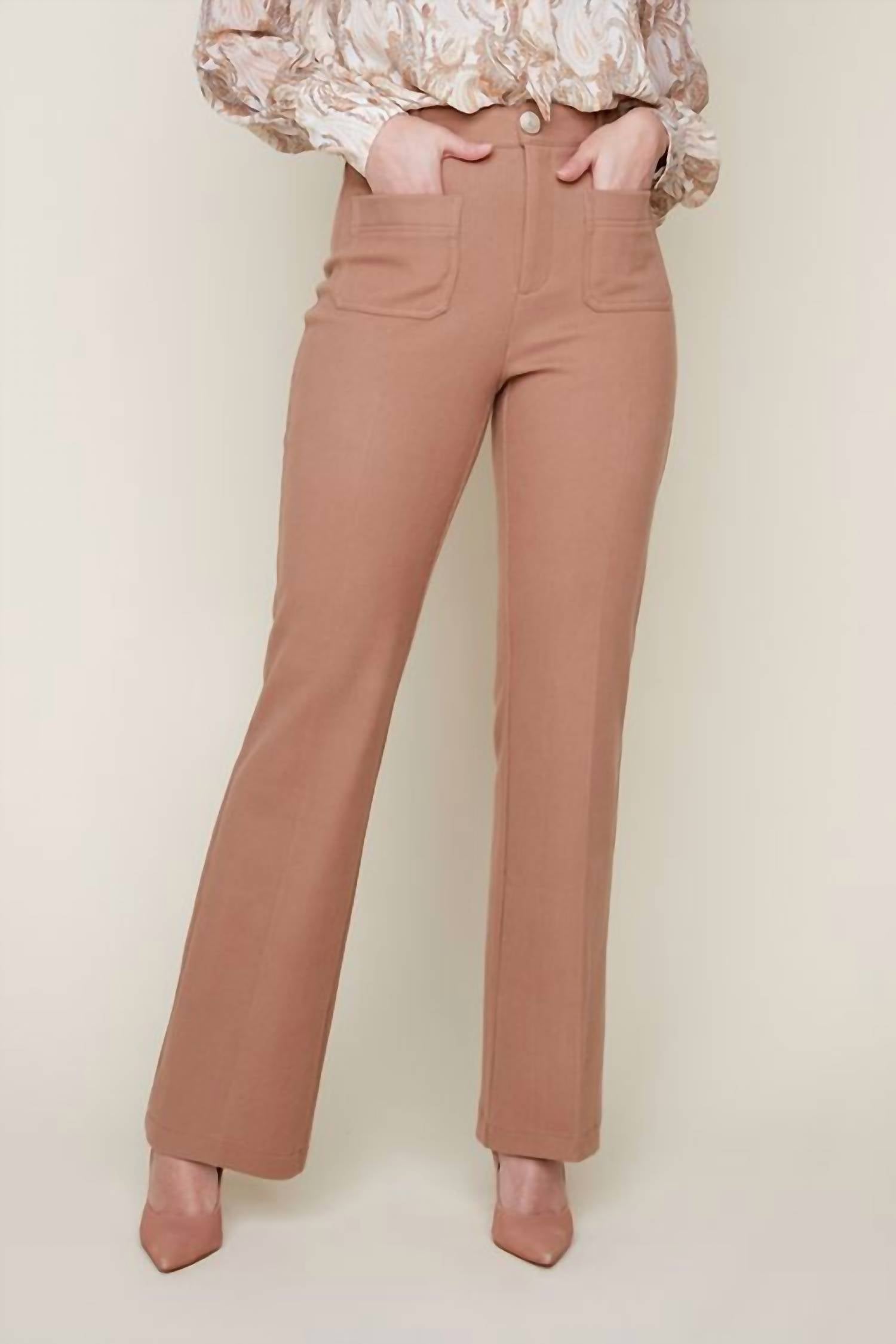This straightleg pant is both stylish and comfortable. Did we mention the fit is perfection? Elevate your wardrobe with the Knit Cord Straight Leg Pants by Renuar, crafted for timeless style. Made from durable polyester, these tan pants offer a high-rise fit and feature charming patch pockets in the front for a sleek appearance. The straight leg cut and solid pattern make them a versatile choice for any outfit. Closure: Button closure.