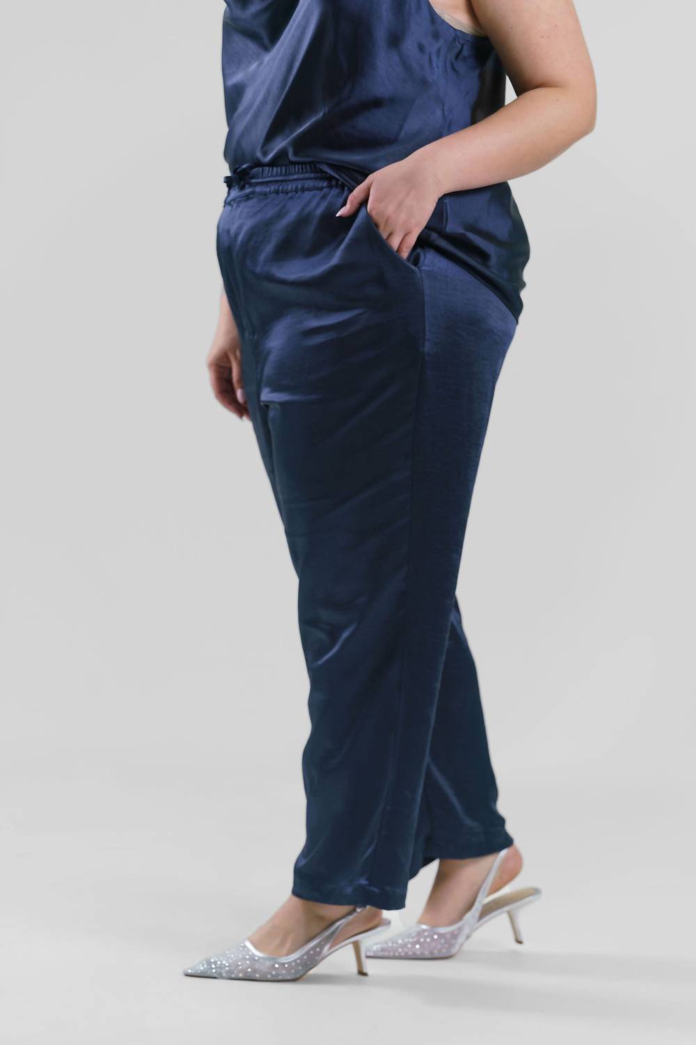 Skies Are Blue - Pull On Satin Pants - Plus Size