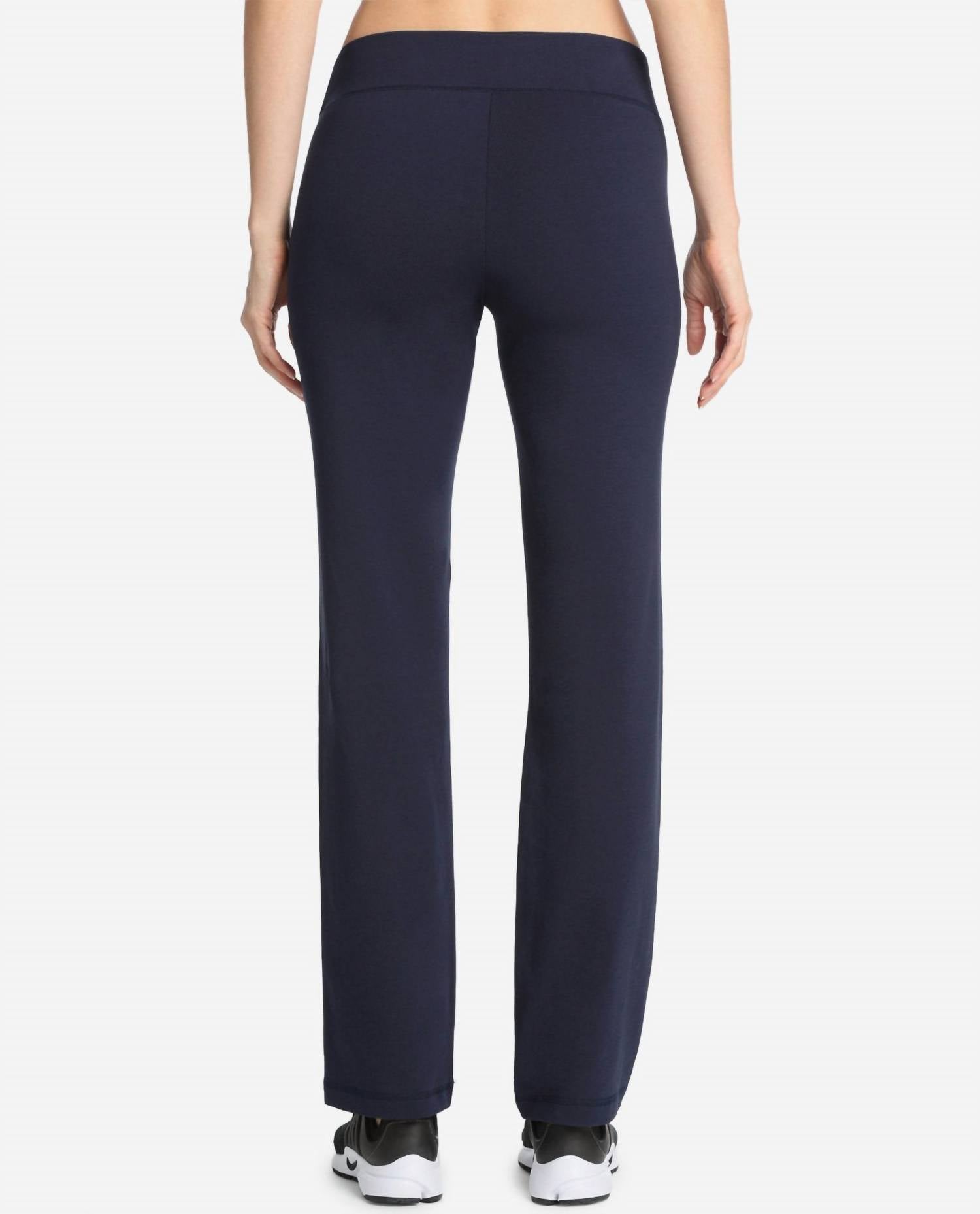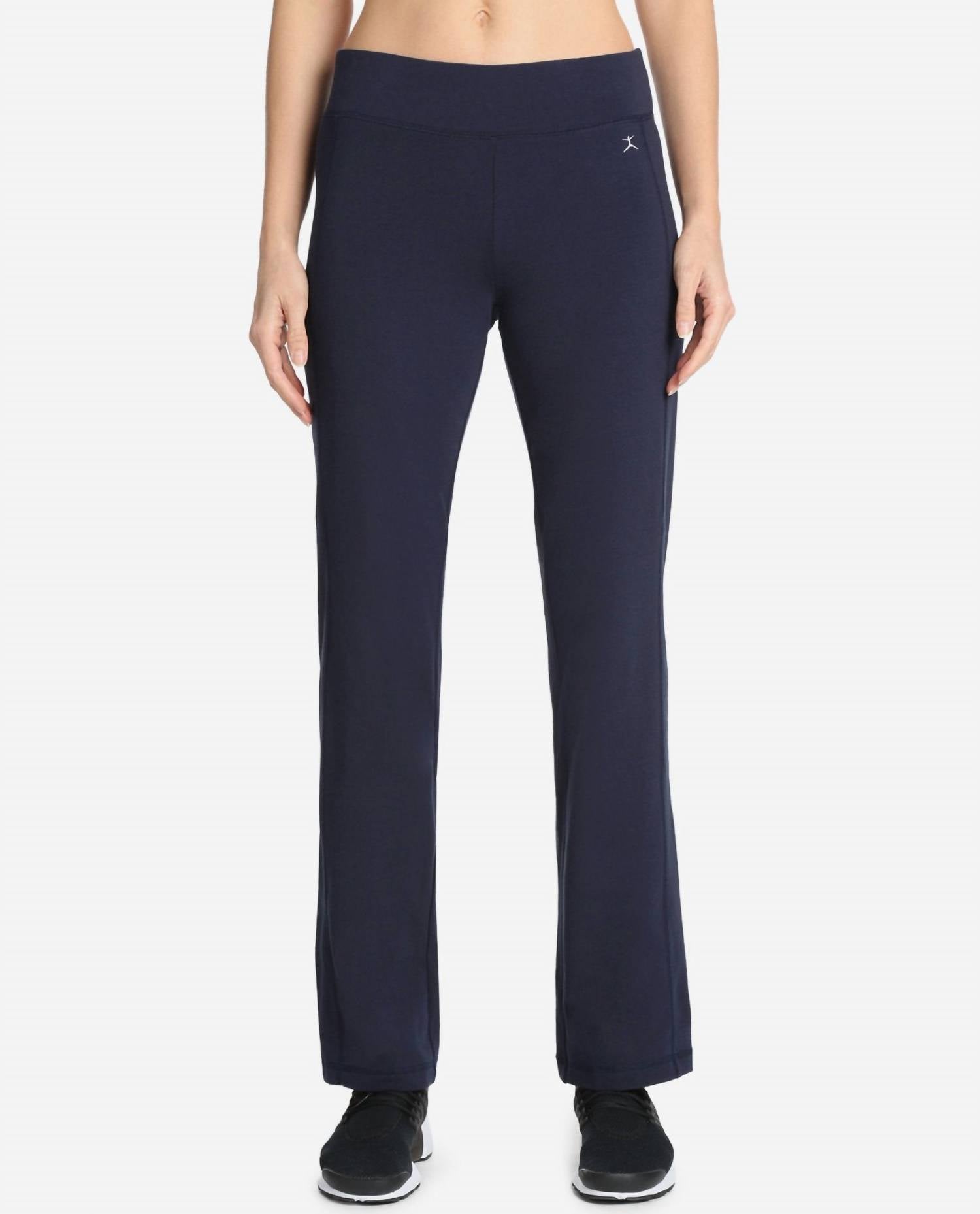 Discover the Essentials Yoga Pants, crafted for yogis of all levels. With a streamlined silhouette, these pants offer a relaxed fit in a straight-leg design. Composition: 55% Cotton, 37% Polyester, 8% Spandex, complete with a high-rise waist and 32-inch inseam. Made in midnight navy, these pants feature a pull-on closure for ultimate comfort.