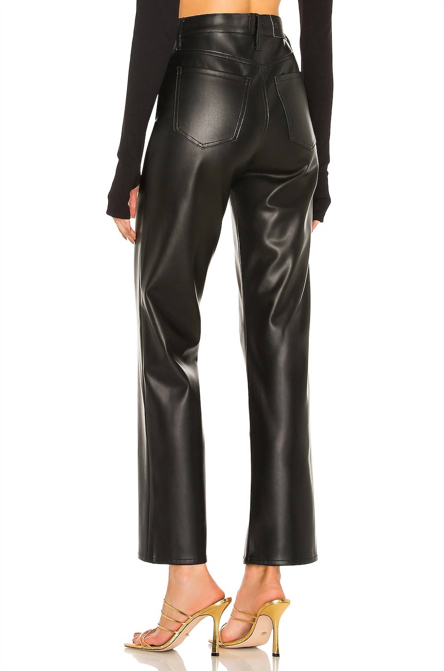 This straightleg pant is both stylish and comfortable. Did we mention the fit is perfection? Discover the Pistola Cassie Super High Rise Straight Pants in a sleek Slate Black, crafted from soft vegan alt leather for a touch of luxury. Made with 100% polyurethane and featuring a button closure with a zip fly, these pants offer a comfortable and relaxed fit with their super high rise design. The classic straight leg silhouette is complemented by a 30" inseam and a 12" rise, with a 16" knee and leg opening to elongate your frame. Made in China, these pants are easy to care for with machine wash instructions.