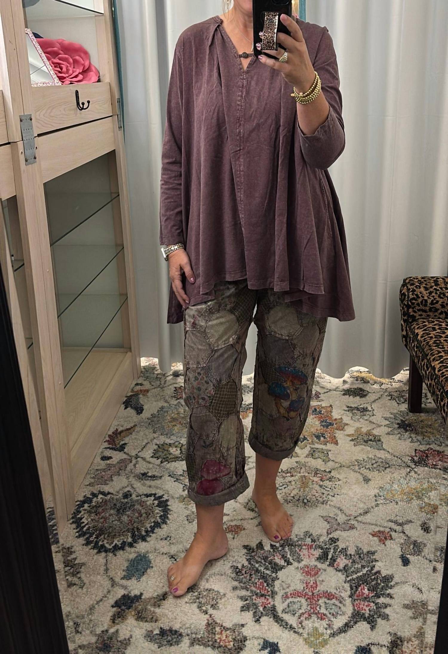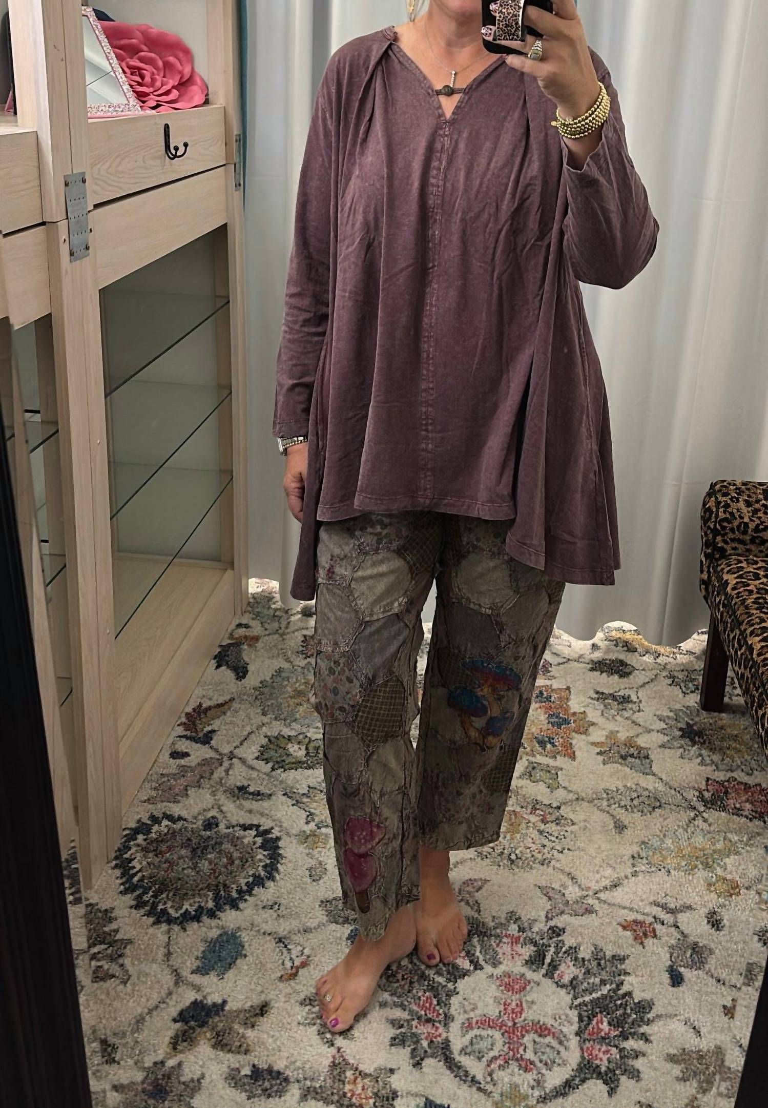 A straightleg pant that workes season after season. Dress these up with your favorite blouse or keep it casual with your go-to tee. Elevate your wardrobe with the You're Up Pant by Paperlace, offering a unique mix of patchwork designs in a vibrant multi-color pattern. Expertly crafted from 100% cotton, these straight-leg pants provide both comfort and style, featuring a button closure and an elastic back for a flexible fit. Ideal for those who appreciate standout, breathable casual wear, these pants come with functional pockets. Care is straightforward with machine wash and tumble dry, making it a practical addition to your spring collection.