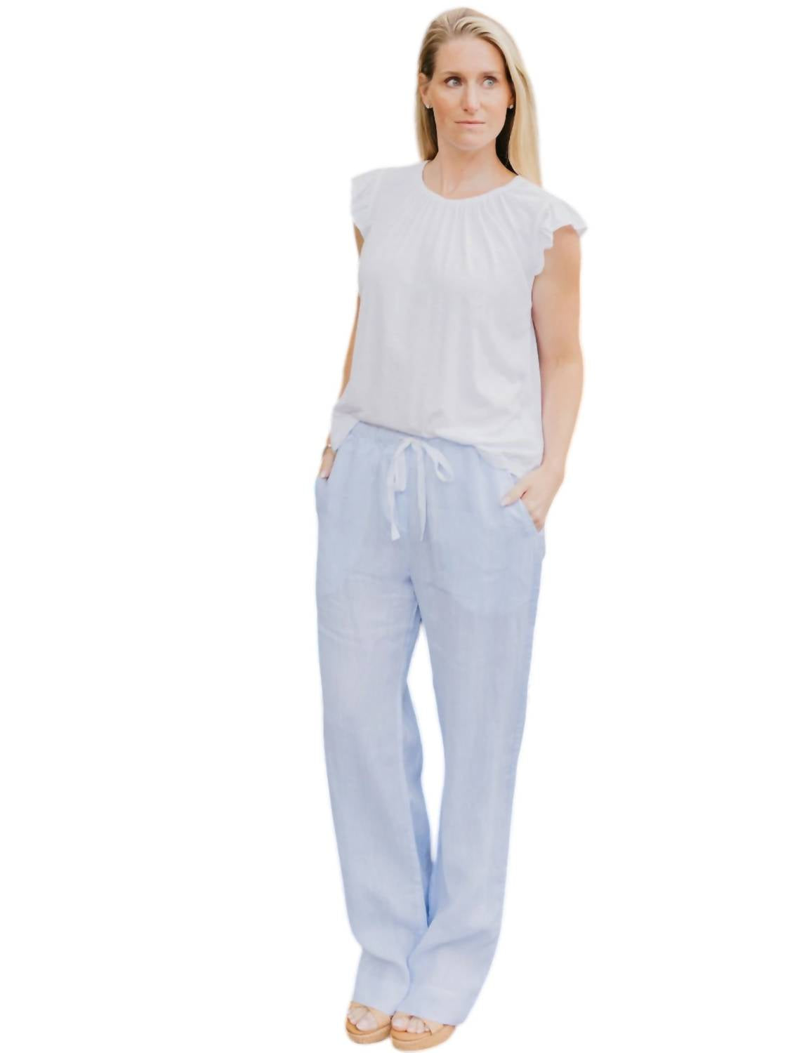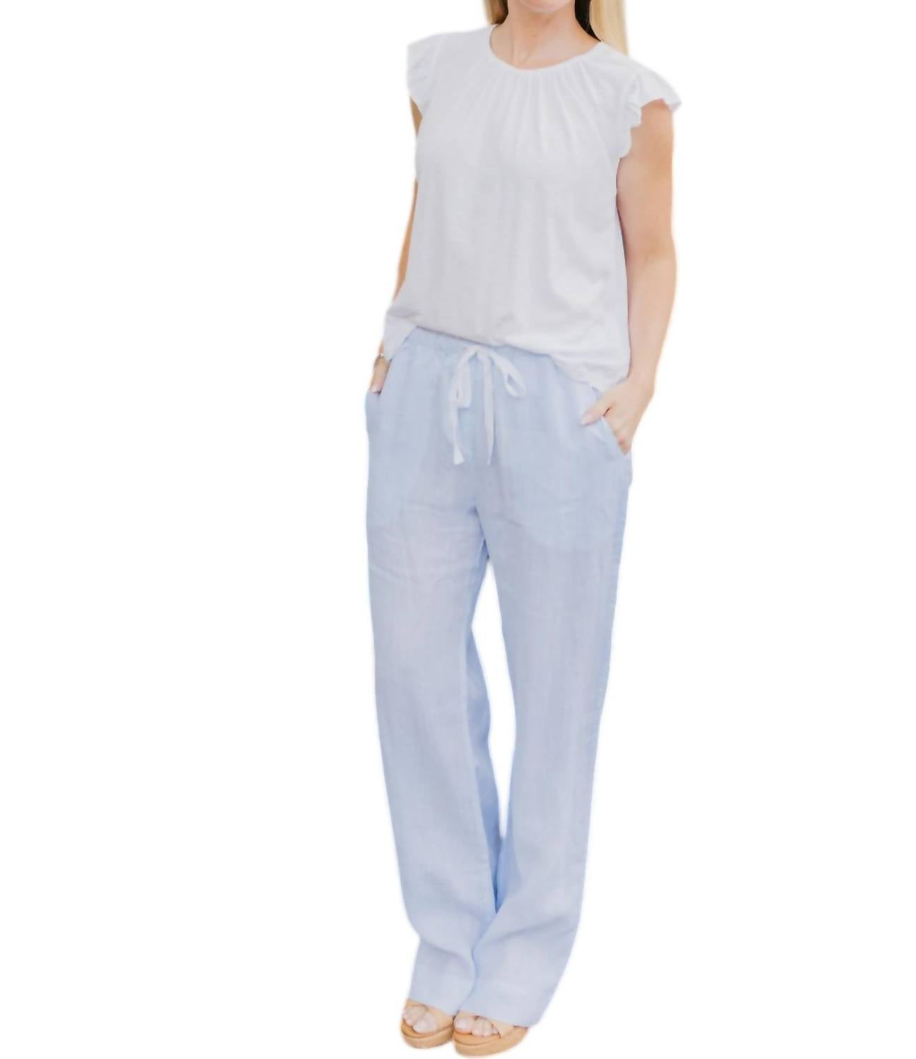 This straightleg pant is both stylish and comfortable. Did we mention the fit is perfection? Introducing the Linen Pants by Nalu, a stylish and comfortable choice for women seeking lightweight fashion. These light blue, straight-leg pants are crafted from pure linen, offering breathable wear for active lifestyles. Featuring a tie closure and convenient pockets, they provide both function and ease. Care for this versatile piece with machine wash and tumble dry instructions, ensuring effortless maintenance.