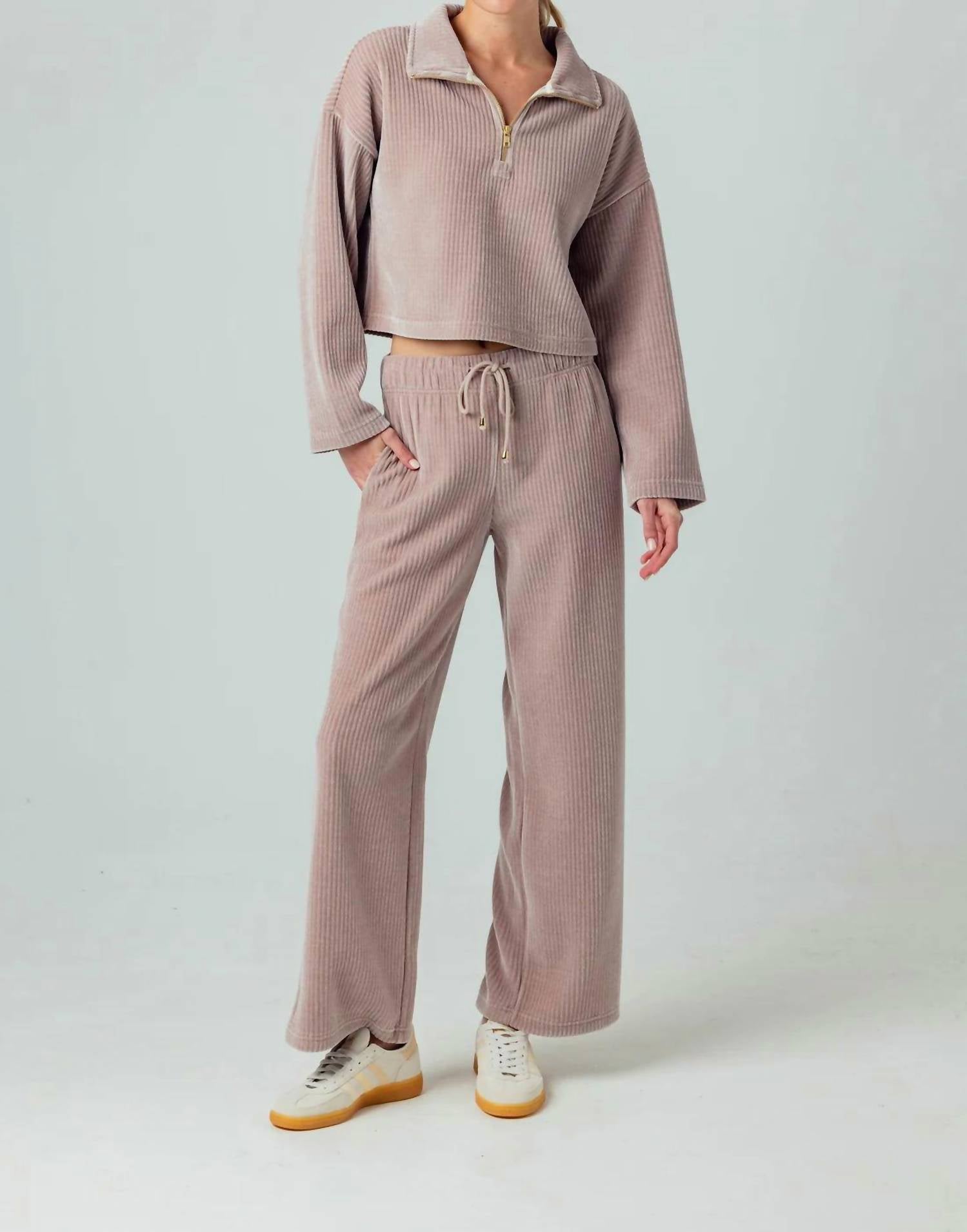 A straightleg pant that workes season after season. Dress these up with your favorite blouse or keep it casual with your go-to tee. Elevate your off-duty style with the Edie Pull-on Drawstring Pant by Sundays, crafted in a plush rib fabric for a soft, velvety feel. Featuring a full-length wide leg and convenient pull-on closure with gold-tipped drawstrings, these pants offer relaxation and style in one. Composition: 95% Polyester, 5% Spandex. Care: Machine wash cold, tumble dry. Imported with an inseam of 31 inches. Model wears a size XS (5’10” height, 32” bust, 25” waist, 35” hips).