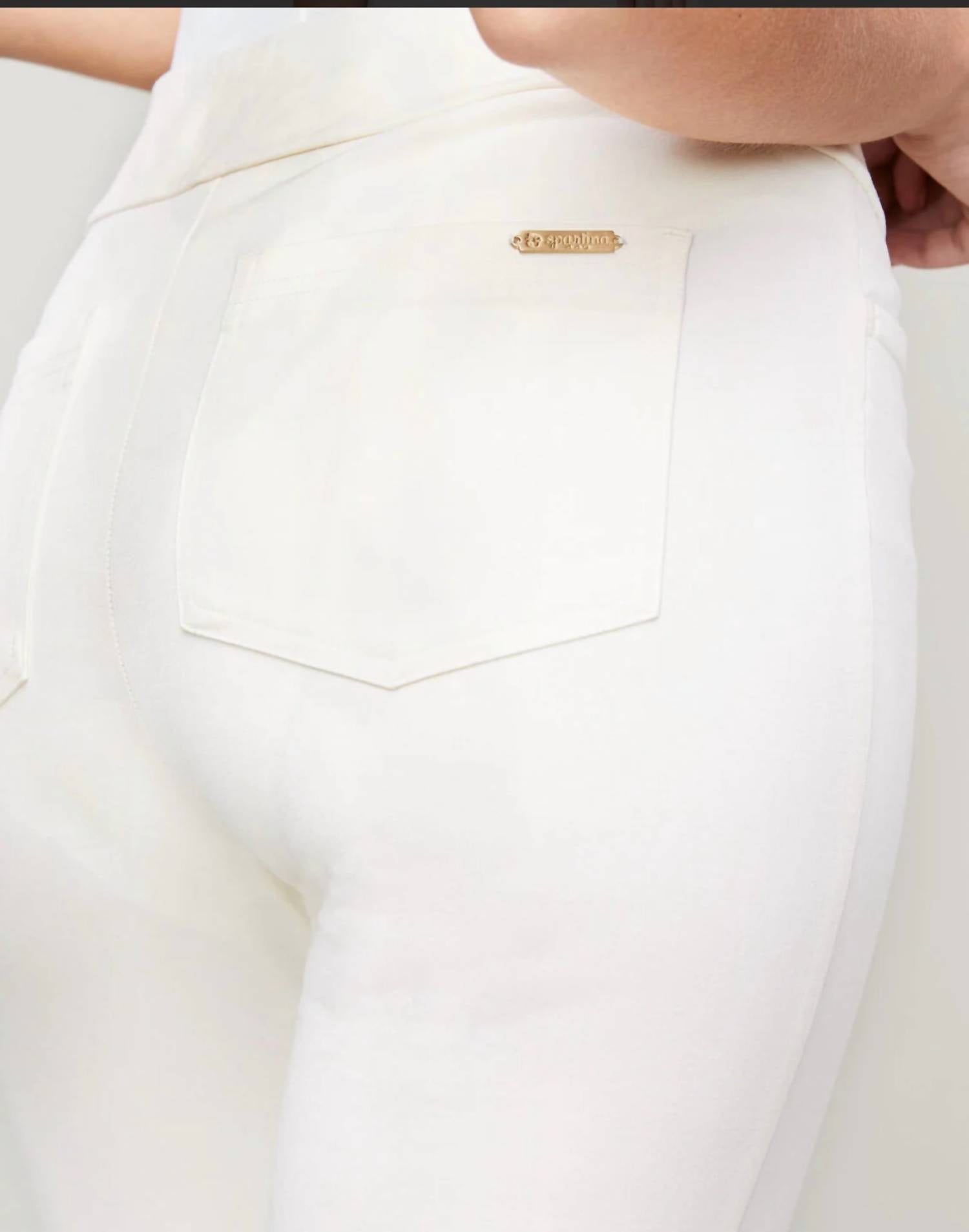A straightleg pant that workes season after season. Dress these up with your favorite blouse or keep it casual with your go-to tee. Meet the Maren Pull On Pant by Spartina 449, a must-have in buttercream for effortless summer style. With a 28" inseam, these women's straight leg pants feature a pull-on closure that ensures a smooth, zipper-free silhouette. Crafted from a comfortable blend of 62% rayon, 33% nylon, and 5% spandex, they provide a flattering fit with sleek front slant pockets. Care for these solid-patterned pants is a breeze with machine wash and tumble dry instructions.