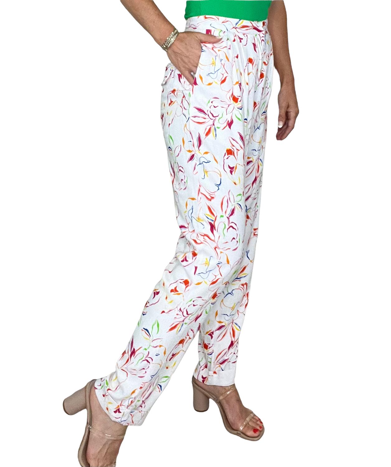A perfectly tailored straight leg that you'll want in every color! Elevate your style with the Electric Ways High Waisted Trouser by SUGARLIPS, a colorful addition perfect for Spring travel adventures. These patterned trousers in White Multi feature a flattering high rise and a tapered leg. Crafted from 97% Rayon and 3% Spandex with a 100% Rayon lining, they offer a pintuck detail along the waist, practical back flap pockets, and a secure hook and eye closure. Measurements for size S: Waist 27", Inseam 29". Care: Machine wash, tumble dry. Model in first photo is 5'9" wearing size XS.