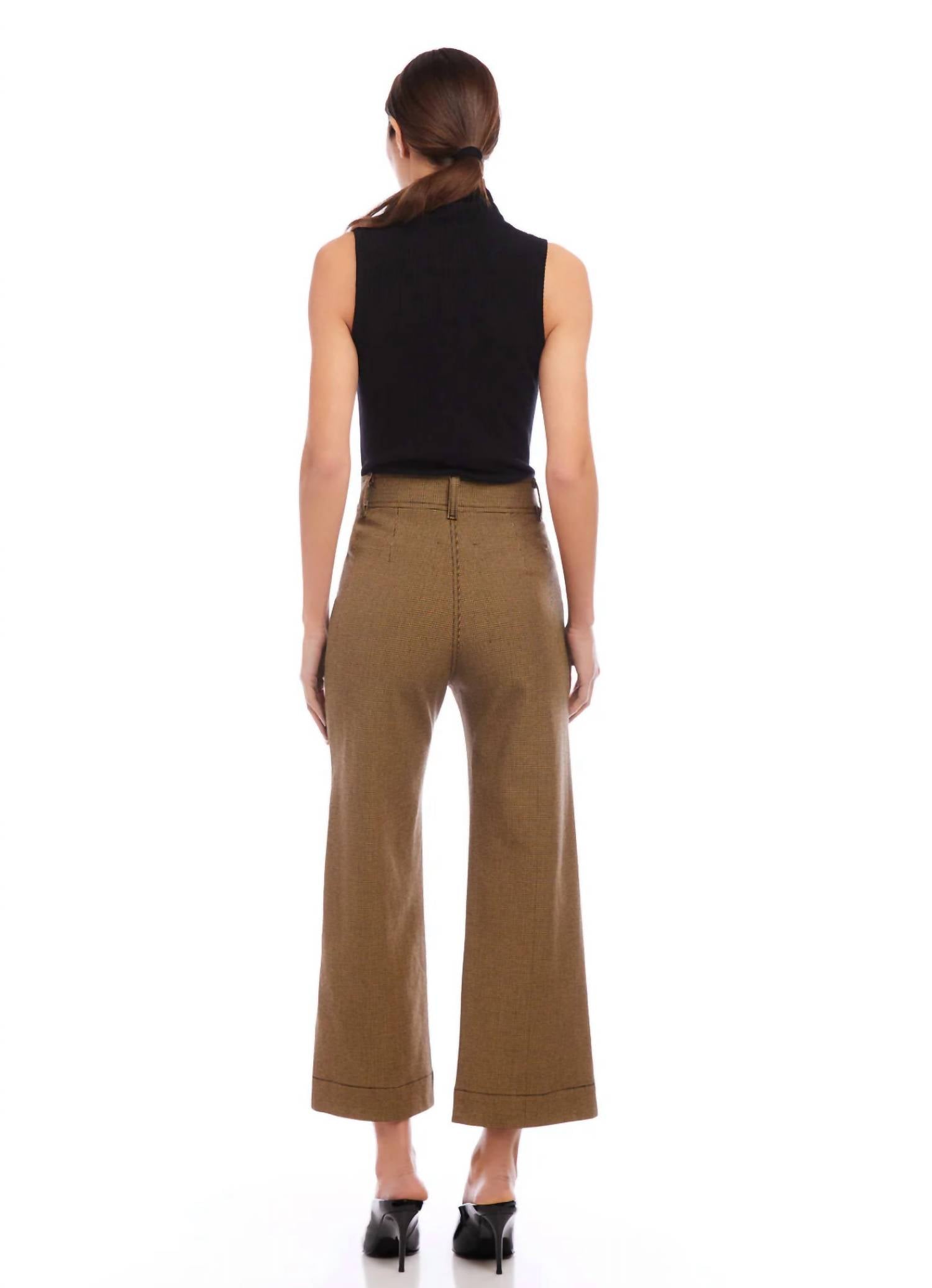 A perfectly tailored straight leg that you'll want in every color! Introducing the Fifteen Twenty Rylee Crop Pants, expertly crafted for seasonal style and comfort. With their high waist and wide leg design, these crops feature a statement houndstooth check pattern that complements a variety of looks. Made from a woven stretch fabric that includes 55% Viscose, 40% Cotton, and 5% Elastane, these pants are USA-made with imported materials. They close with a convenient button and zipper, and care is simple with a machine wash in cold water and hang drying. Front Rise: 12.5 inches (size 6), Inseam: 27 inches (all sizes), Leg Opening: 21 inches (size 6).