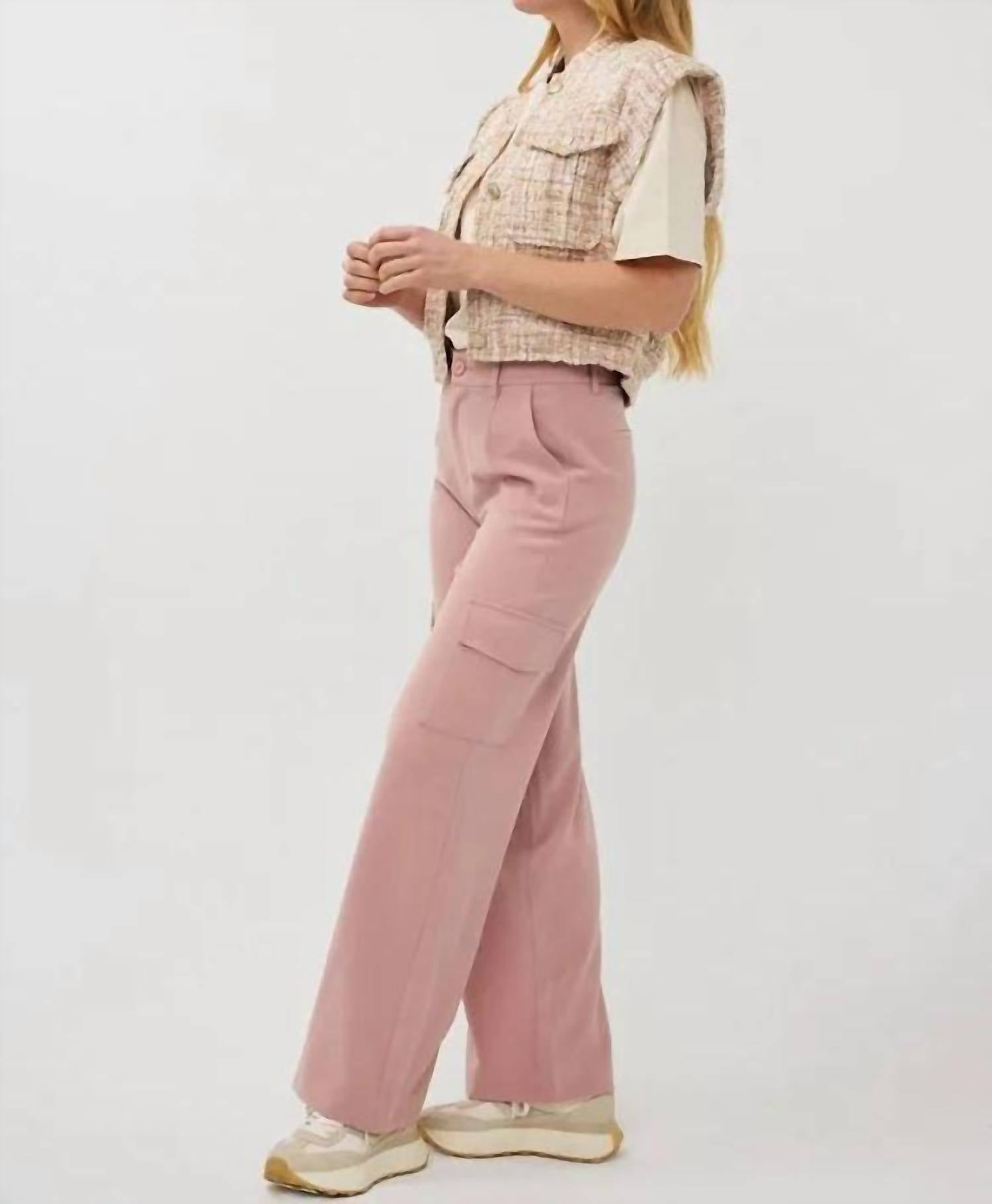 A perfectly tailored straight leg that you'll want in every color! Step into summer style with the ESQUALO Wide Leg Cargo Trousers in vibrant pink, perfect for casual chic or streetwear looks. Featuring a relaxed fit and wide leg style, these trousers have a mid-rise waist and a generous 30-inch inseam for comfort. Made from 93% Polyester, 7% Spandex with a button closure and practical pockets, they are 40 inches in length and designed for easy travel and versatility. Care is simple with machine wash and tumble dry instructions, making these trousers an effortless addition to your wardrobe.