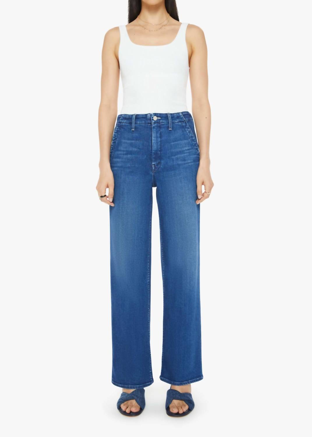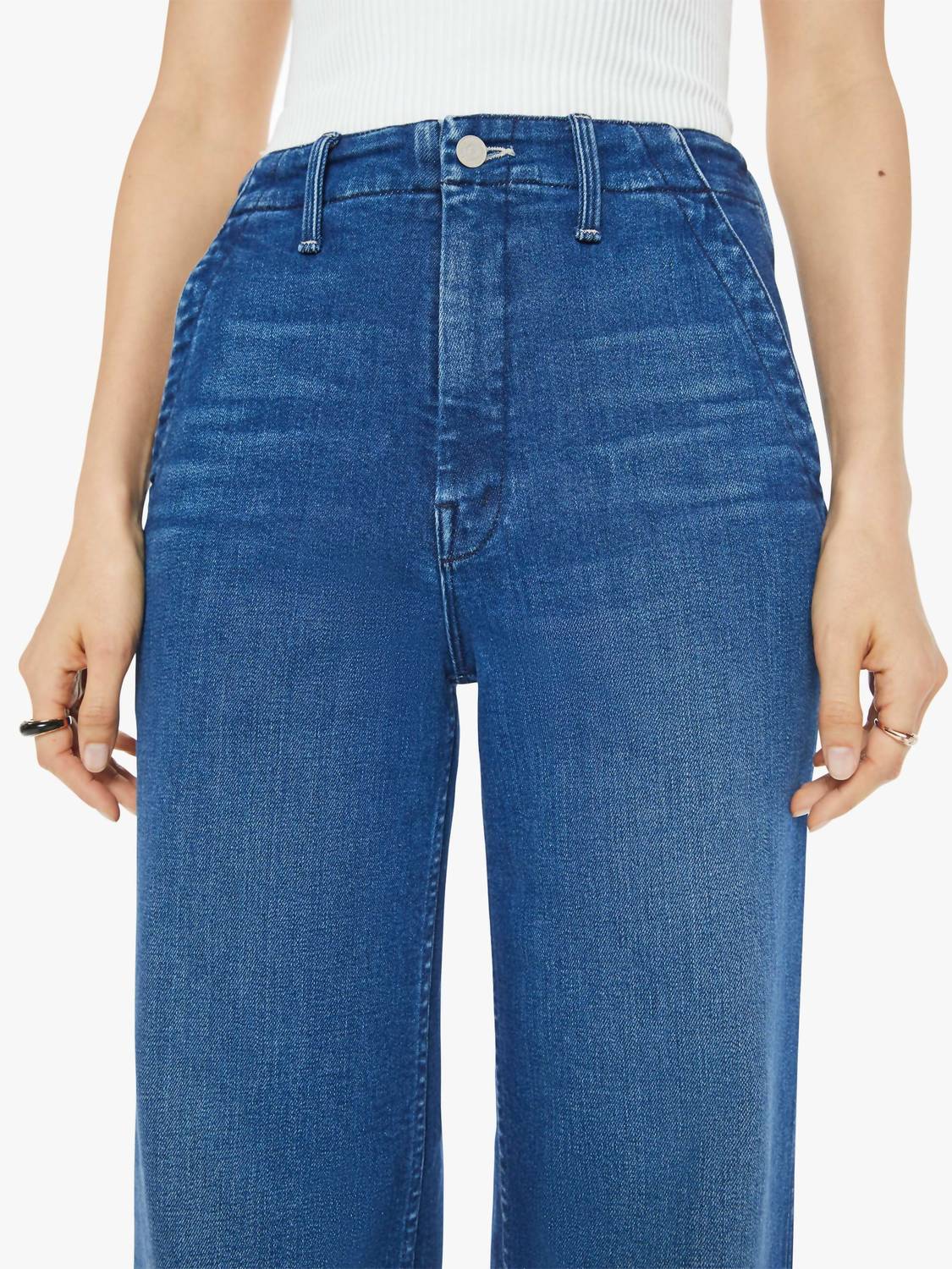 A perfectly tailored straight leg that you'll want in every color! The Major Zip Sneak Pants by Mother are a stylish addition to any fashion-forward wardrobe. Perfect for a minimalist, these high-rise pants feature a straight leg cut with a 32-inch inseam and a 12.25-inch rise, crafted from a comfortable cotton blend. Designed in a dark blue medium wash with subtle whiskering, they include practical side slit pockets and a seamless zip closure. Made in Los Angeles, they are easy to care for with machine wash and tumble dry instructions, making them ideal for a dinner party or casual spring outing.