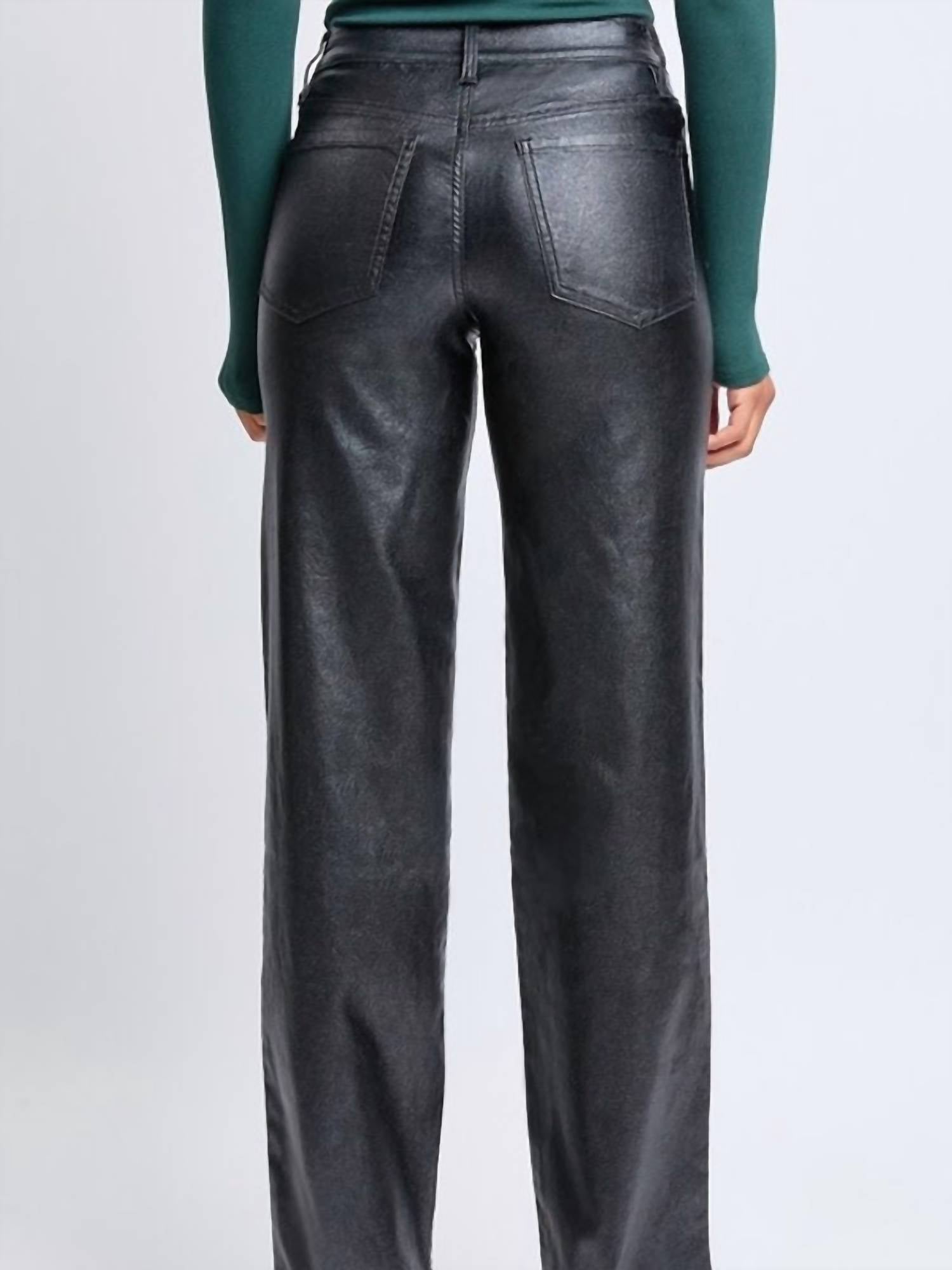 A perfectly tailored straight leg that you'll want in every color! Introducing the Junior High Rise Straight Leg Pant by YMI Jeans, a standout addition to any fashion-forward wardrobe with its striking Black Metallic finish. This relaxed fit pant features a flattering high-rise waist, 32" inseam, and a 10" rise for an elongated silhouette. Crafted from a durable nylon blend, it includes a 1-button closure and functional 5-pocket construction for practicality. Complete your look with ease, enhancing your style whether it's everyday casual or evening chic.