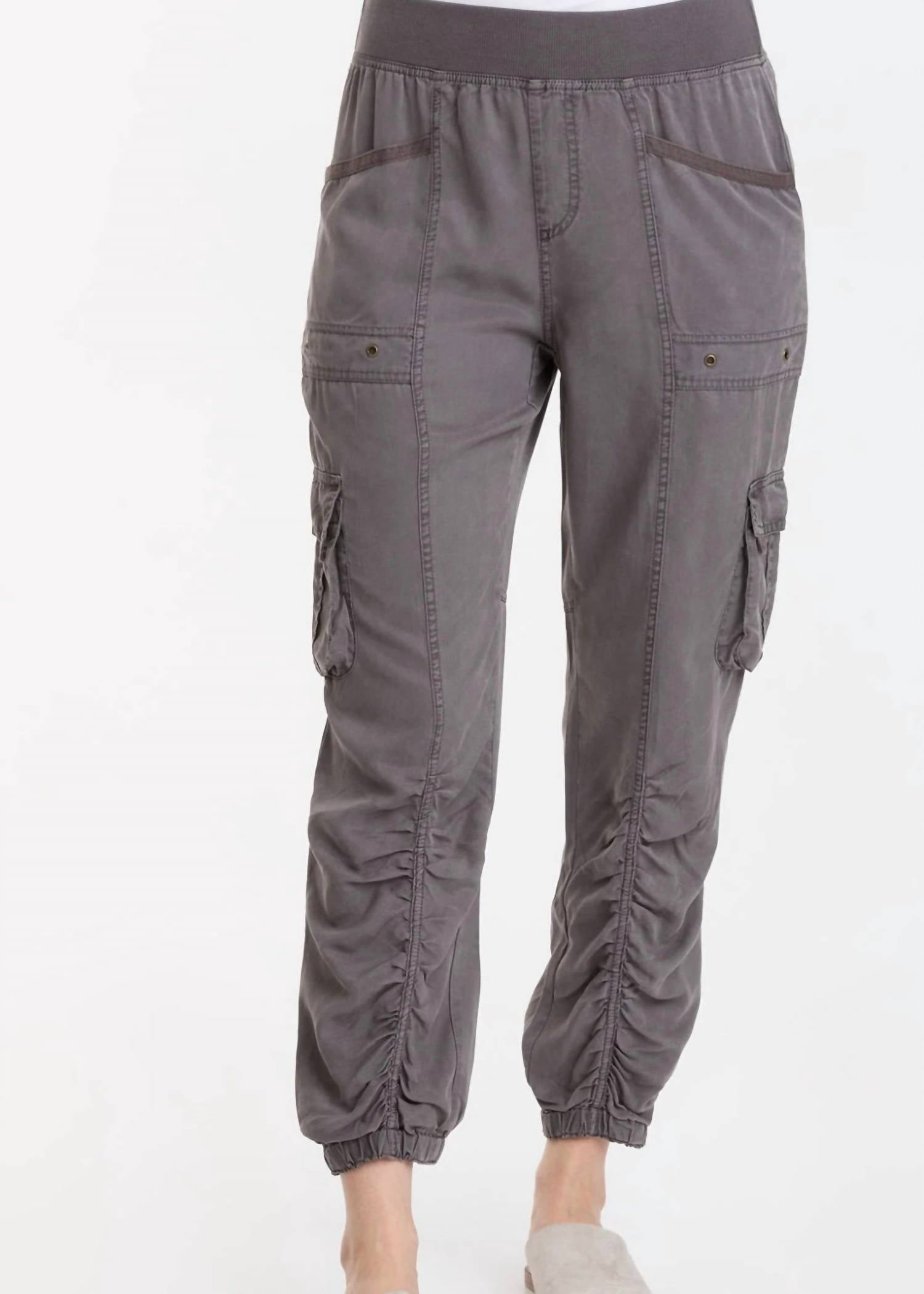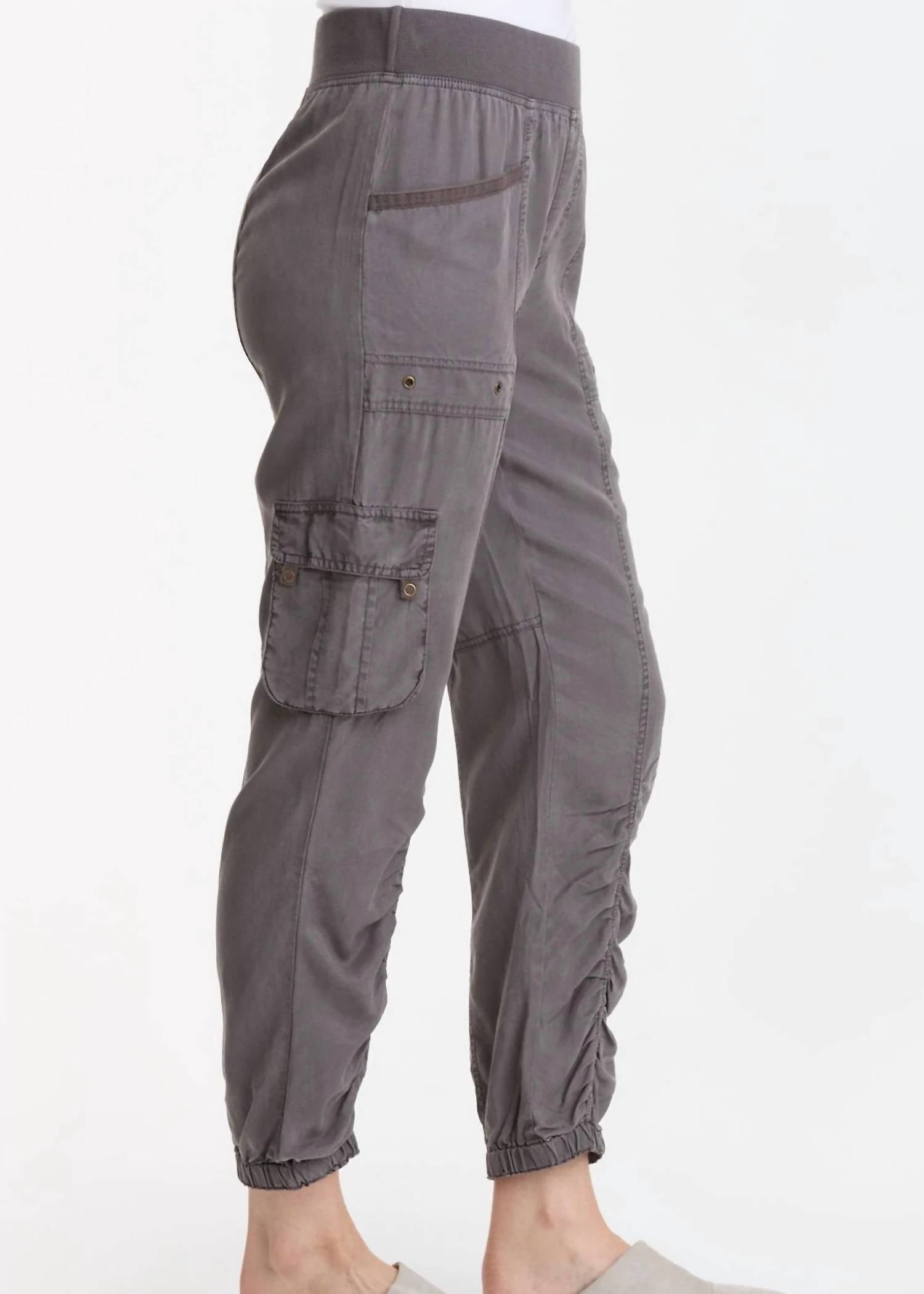 This straightleg pant is both stylish and comfortable. Did we mention the fit is perfection? Elevate your athleisure wardrobe with the Squire Pant by XCVI, a perfect fusion of style and comfort. Featuring a contrast rib pull-on elastic waistband and functional cargo pockets with antique brass hardware.