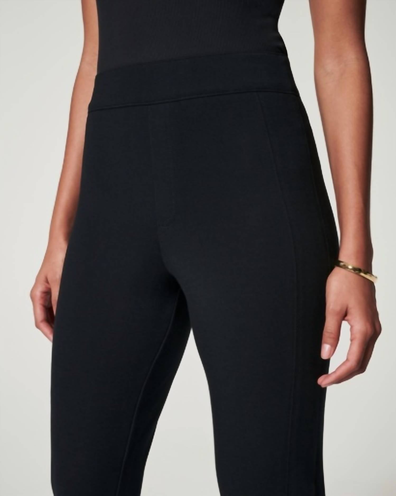 This straightleg pant is both stylish and comfortable. Did we mention the fit is perfection? Discover the Perfect Slim Straight Pants by Spanx, crafted from a nylon blend(68% Rayon, 28% Nylon, 4% Elastane) for a sleek fit. These high-rise, pull-on pants feature a classic black solid pattern, ideal for those seeking a monochrome summer look. The slim fit and straight leg design make them perfect for vacation occasions, while also incorporating practical pockets. Care instructions include machine wash cold with a gentle cycle and line dry for best results.