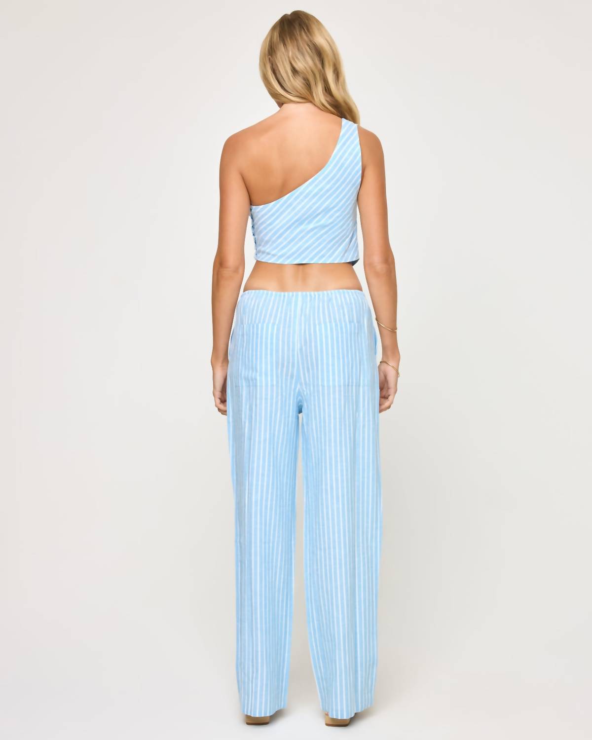 A straightleg pant that workes season after season. Dress these up with your favorite blouse or keep it casual with your go-to tee. Embrace effortless style with the Corey Pant by L*SPACE, featuring a charming By The Bay Stripe pattern. These mid-rise, straight-leg pants offer a relaxed fit and are crafted from a blend of 54% Viscose, 33% Cotton, and 13% Linen. Designed for both comfort and functionality, they include an adjustable drawstring waist and convenient pockets at the hips. Closure: Pull on. Care: Machine wash, tumble dry, making them perfect for your summer vacation wardrobe.