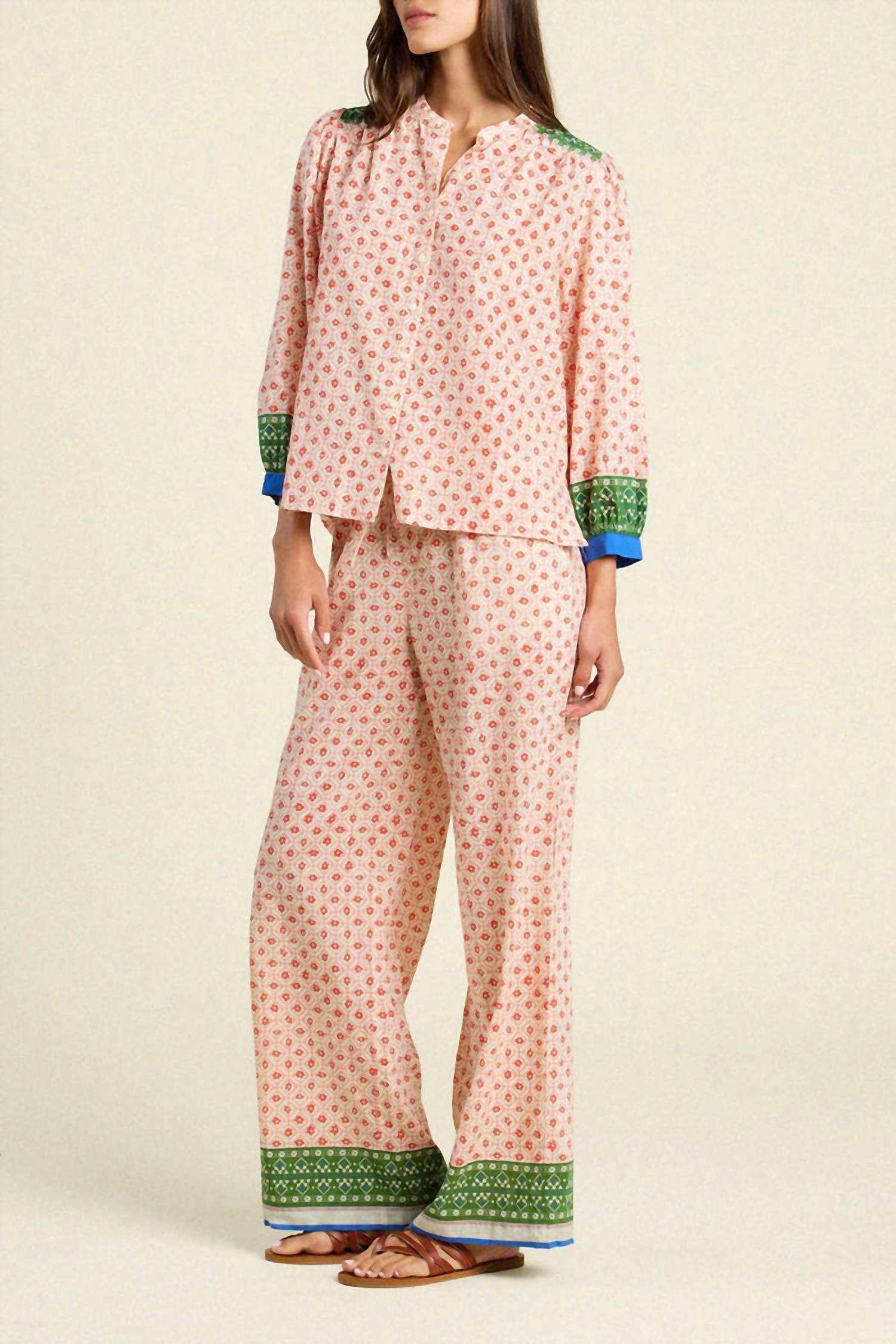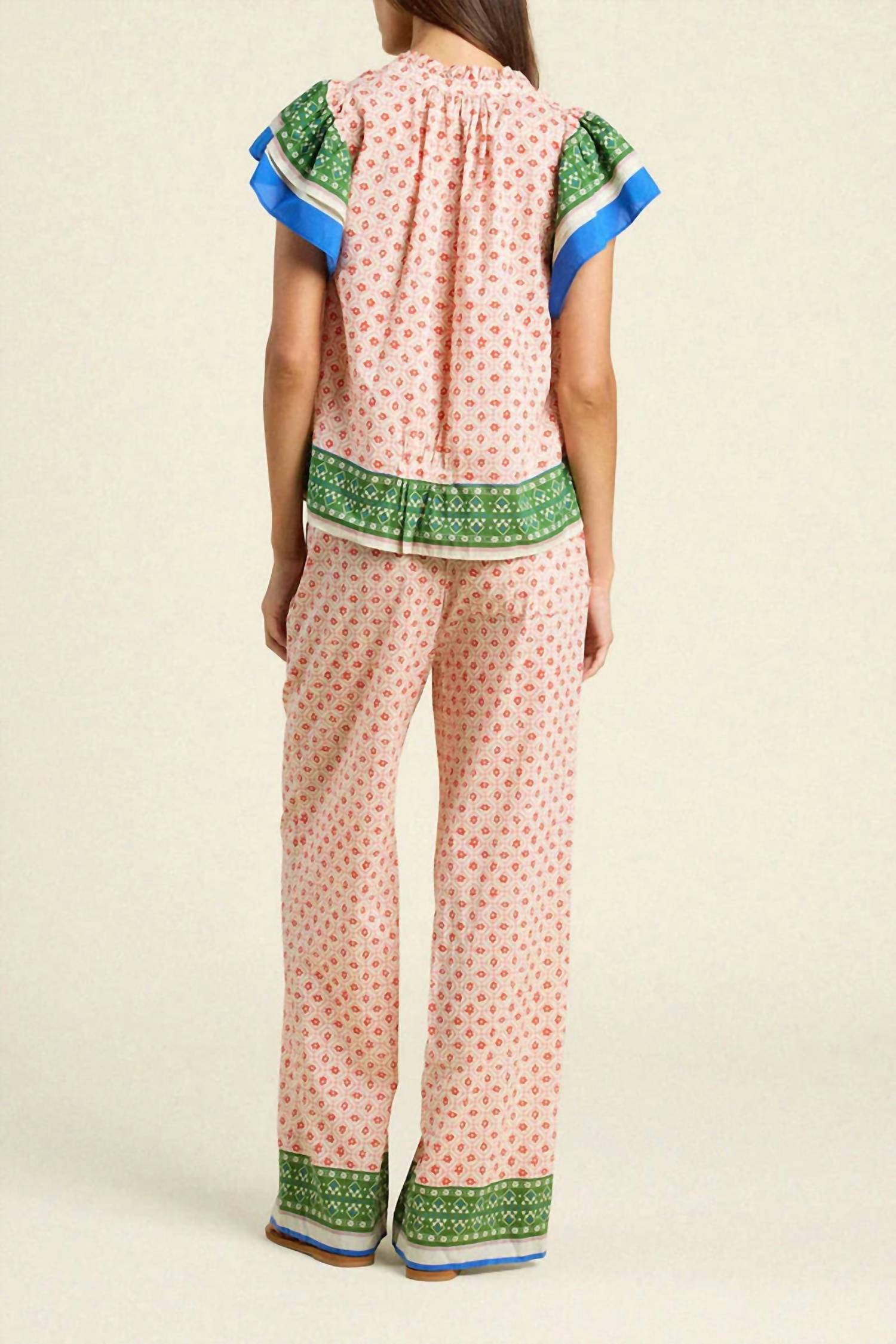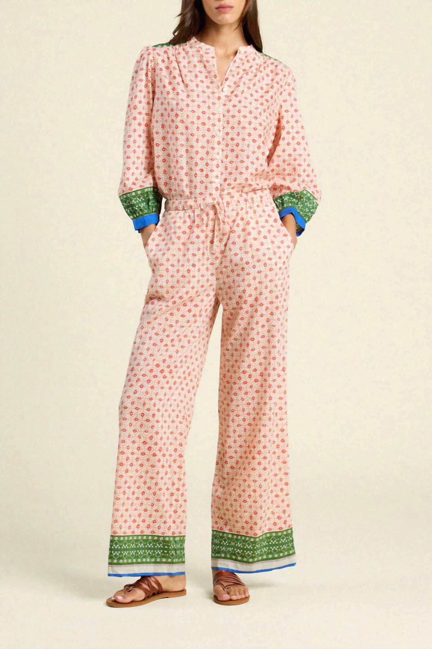 A straightleg pant that workes season after season. Dress these up with your favorite blouse or keep it casual with your go-to tee. Discover the Vera Pant by TROVATA, a stylish full-length option in the Santorini Border design, ideal for your summer vacation wardrobe. Crafted from a soft cotton silk blend, these straight-leg pants feature convenient side pockets and a slim drawstring waist with elastic, ensuring a comfortable and flattering fit. Closure: Tie closure. Care: Machine wash, tumble dry.