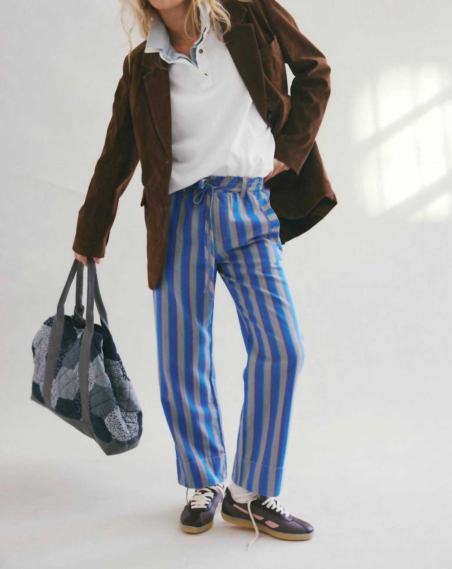 This straightleg pant is both stylish and comfortable. Did we mention the fit is perfection? Elevate your wardrobe with the Marielle Pull-on Pants by Free People, featuring a relaxed straight-leg fit that sits at the natural waist. Crafted from 100% cotton with a matching cotton lining, these sapphire combo stripe trousers offer a stylish flair with their timeless print. The design includes a convenient pull-on closure, adjustable drawcord waist, and four-pocket styling, providing both comfort and functionality. Perfect for any look, these versatile pants are easy to care for with a simple machine wash.