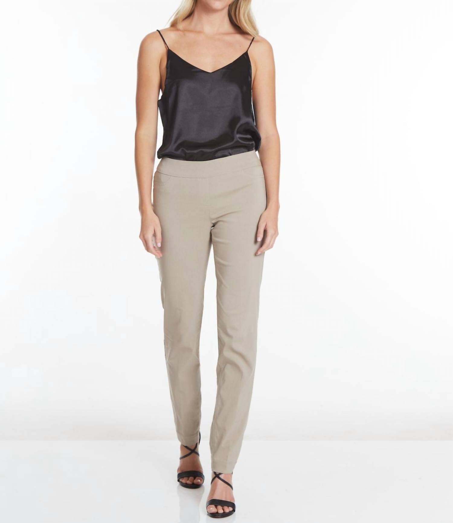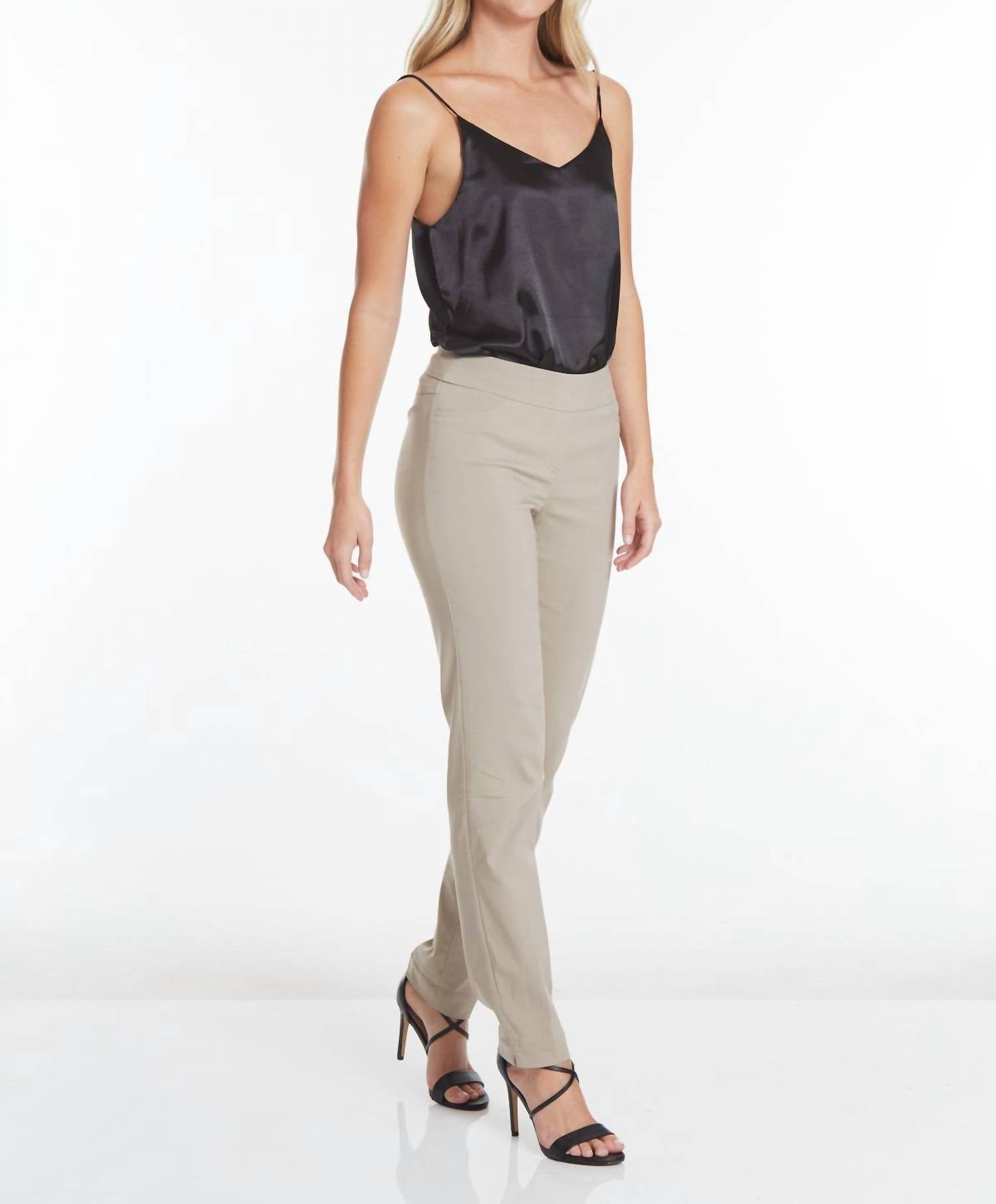 A perfectly tailored straight leg that you'll want in every color! Experience superior comfort and style with the Pull-on Narrow Leg Pants by Slimsation By Multiples. Crafted in versatile Stone, these high-rise pants are designed with a contoured waistband and a slim fit that flatters any silhouette. Made from a blend of 76% Rayon, 21% Nylon, and 3% Spandex, they offer a 31" inseam and move with you while retaining their shape. Closure type: Pull On. Care Instructions: Machine Wash.