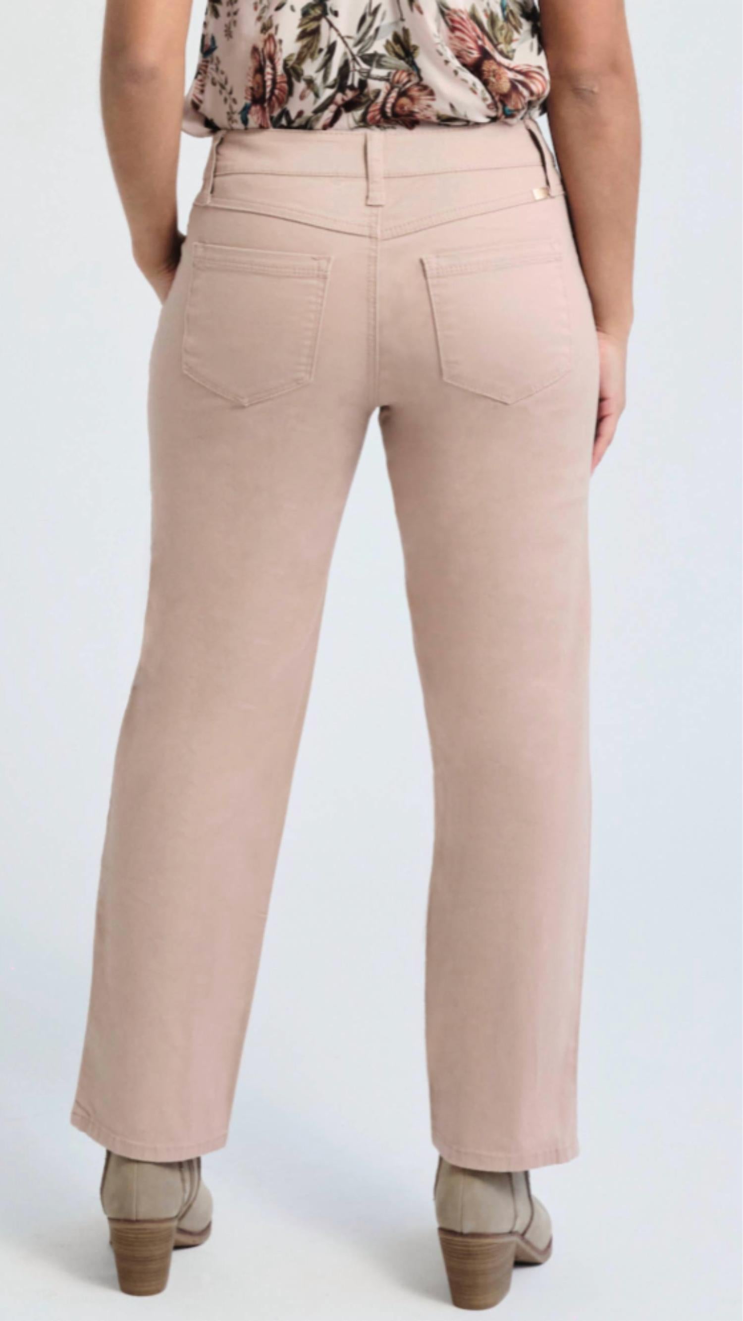 A straightleg pant that workes season after season. Dress these up with your favorite blouse or keep it casual with your go-to tee. Elevate your style with the 1822 Denim Twill Slim Straight Pant in Dusty Rose, designed specifically for petite frames. Crafted in a brushed twill blend of 98% cotton and 2% spandex, this straight-leg pant features a mid-rise and a slim fit. Key dimensions include a 9.5" rise, 14.5" leg opening, and 26" inseam. The button closure ensures a secure fit while offering a minimalist, solid pattern perfect for a spring holiday party.