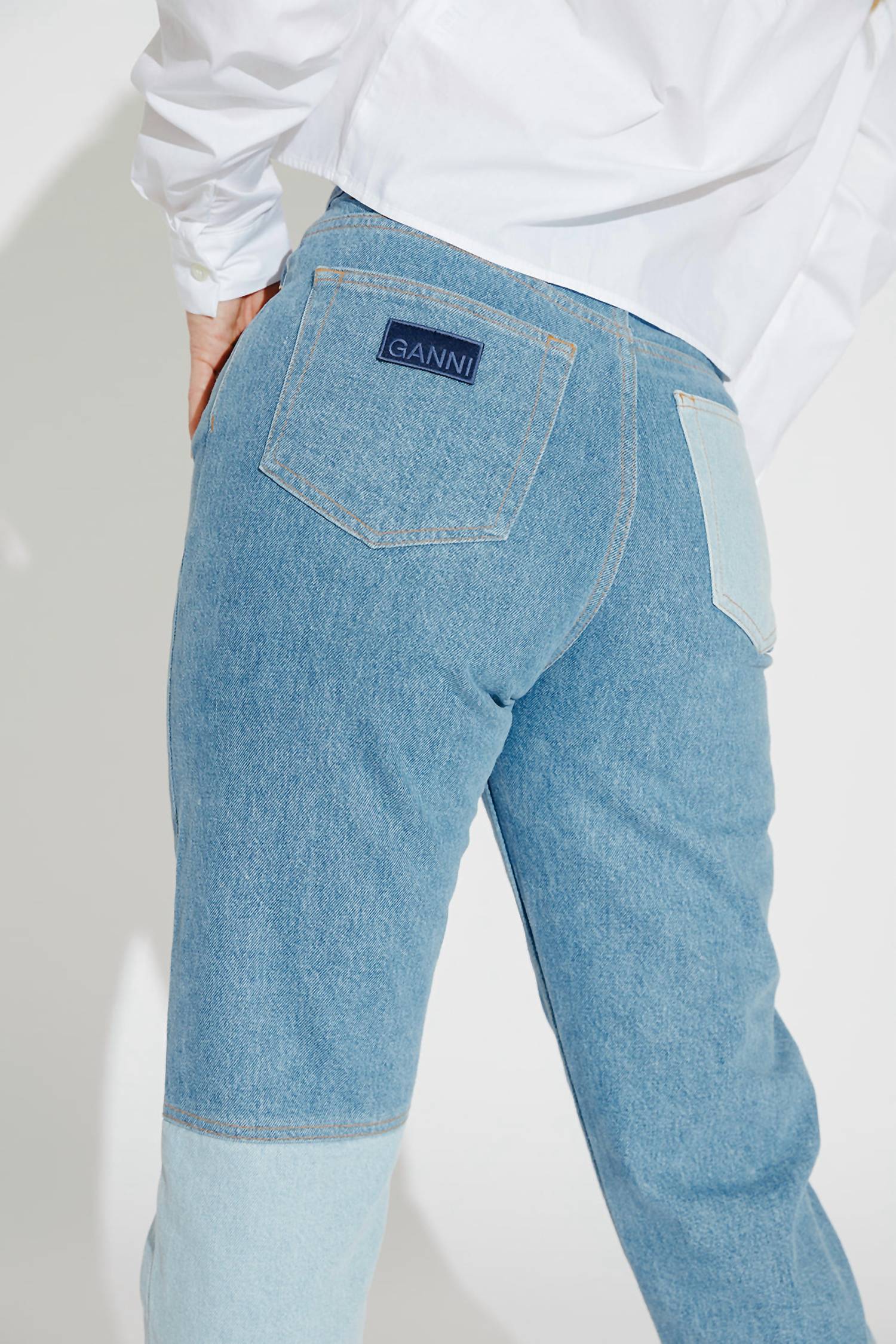 A straightleg pant that workes season after season. Dress these up with your favorite blouse or keep it casual with your go-to tee. Introducing the Ganni Cutline Denim Swigy Pants, a perfect blend of modern style and comfort in a chic Mid Blue Stone hue. These straight-leg, relaxed-fit jeans are crafted from 100% organic cotton, ensuring both sustainability and a soft feel. Featuring practical pockets and a convenient zip closure, they are designed with a high-waisted, tapered fit, complete with a logo patch on the back pocket. Care for these trendy workwear staples is simple, as they are machine washable and suitable for tumble drying.