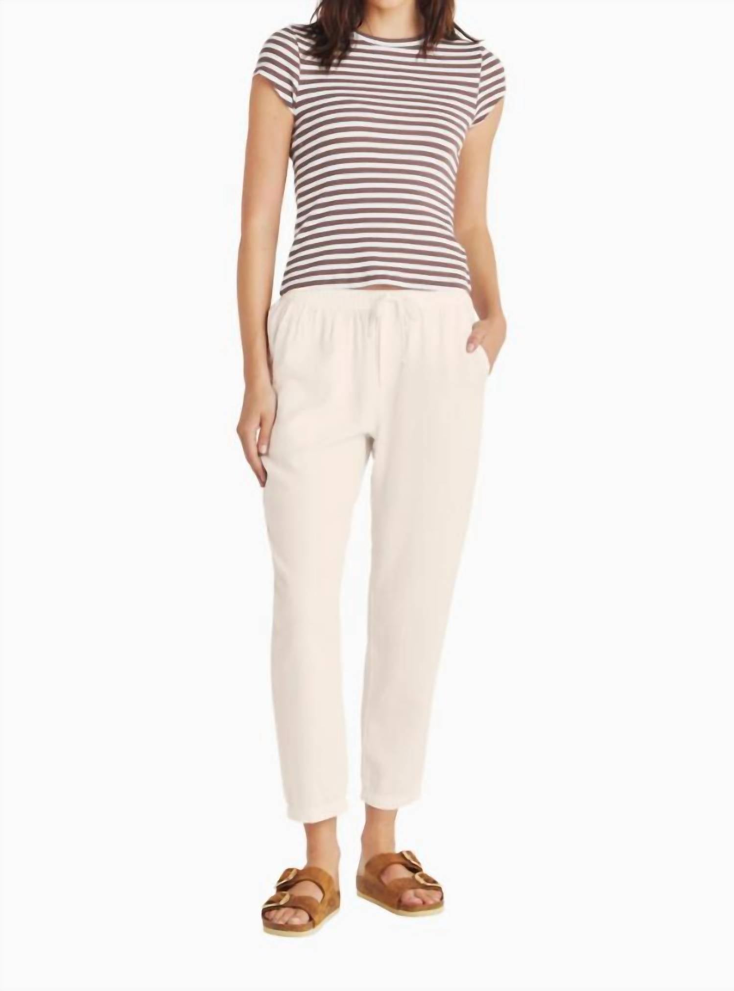 A straightleg pant that workes season after season. Dress these up with your favorite blouse or keep it casual with your go-to tee. Stay cool and stylish this summer with the Splendid Angie Pant, crafted from a breathable 77% Lyocell, 22% Linen, 1% Elastane blend in a chic Moonstone shade. These mid-rise pants offer a relaxed fit and feature a tapered leg with an inseam of 26.5 inches, making them perfect for a minimalist, effortless look. With front patch pockets and a convenient drawstring waist, they hit just above the ankle for a versatile, fashionable fit. Closure is pull-on, and these pants are easy to care for with a machine wash cold instruction.