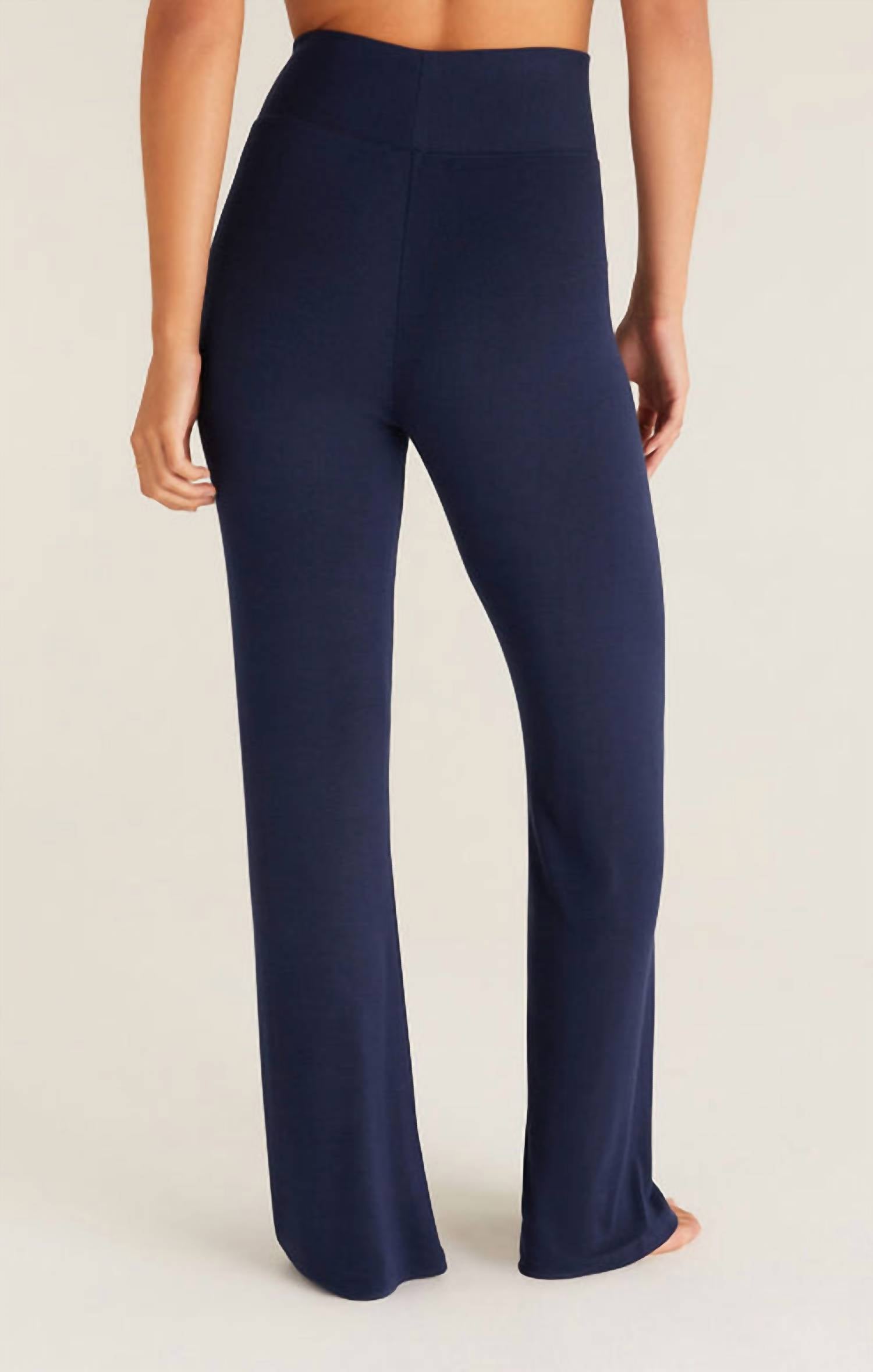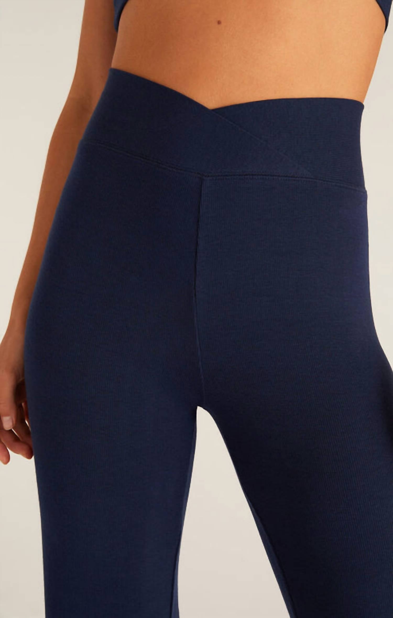 High waisted with a flattering crossover design. Made using soft rib fabric, relaxed fit. Pull on. Plain color. Full length. 96% Modal 4% Spandex.