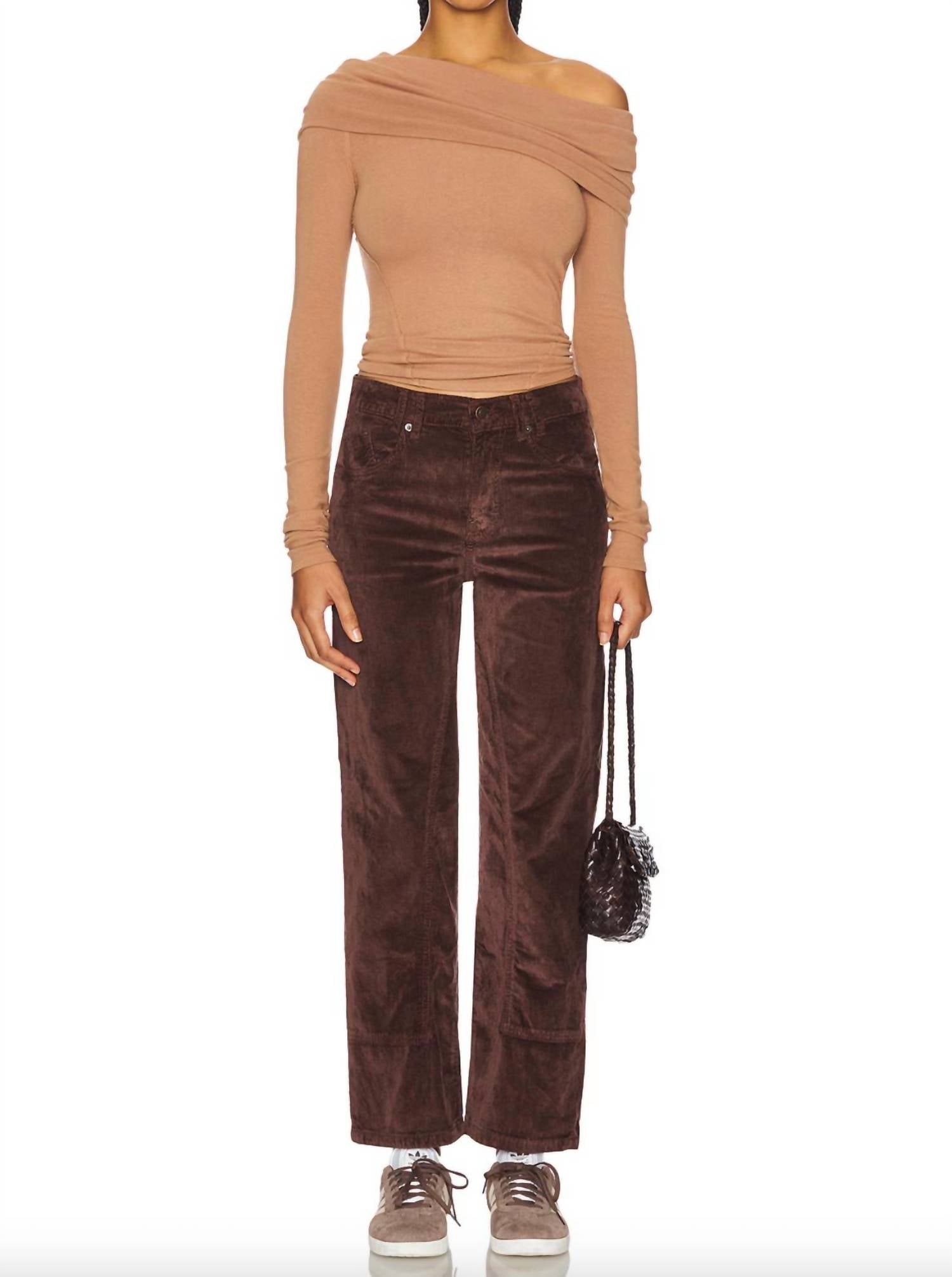 This straightleg pant is both stylish and comfortable. Did we mention the fit is perfection? Introducing the Risk Taker Corduroy Straight Leg Pant by Free People, designed for a laid-back yet chic vibe. These pants, in a warm brown hue, feature a relaxed fit midweight corduroy fabric that drapes effortlessly over the legs, narrowing slightly from 17" at the knee to 16" at the leg opening. Made with 76% cotton, 22% modal, and 2% elastane, this piece offers both comfort and durability. With a functional zip fly and button closure, plus a 5-pocket design, these pants are both practical and stylish. Made in Pakistan, they require simple care: machine wash and lay flat to dry.