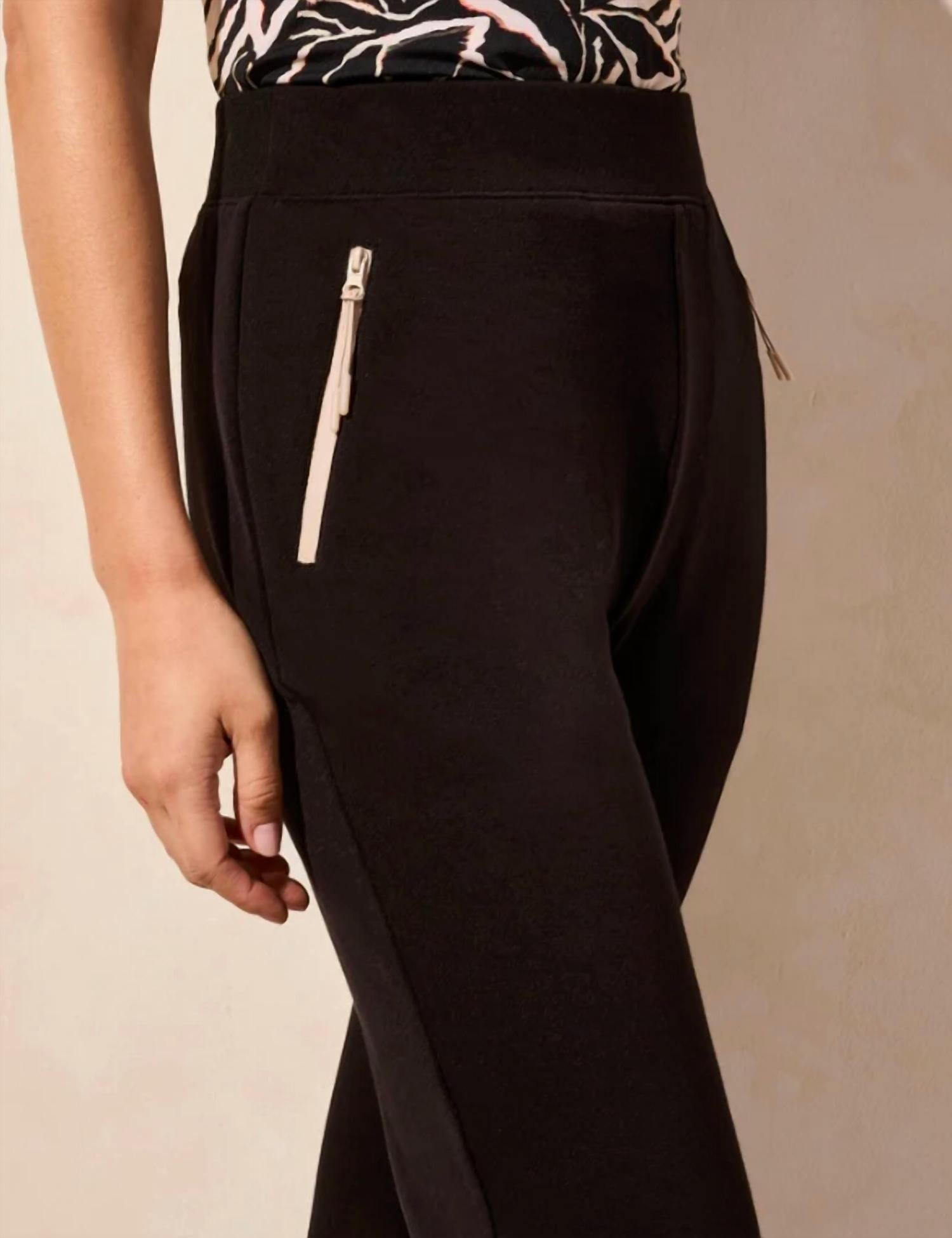 A perfectly tailored straight leg that you'll want in every color! Elevate your workout wardrobe with the TRIBAL Techno Lux Contrast Trim Pant in sleek black, perfect for a minimalist and stylish look. Featuring a slim-leg fit with a 28'' inseam, these pants are crafted from a comfortable scuba knit composed of 46% Polyester, 44% Rayon, and 10% Spandex. The high-rise design ensures comfort with a covered elastic waistband, while the convenient zip closure pockets offer practicality. Ideal for fitness enthusiasts, the contrast zipper accents add a touch of flair to this solid pattern pant, seamlessly blending fashion with function.