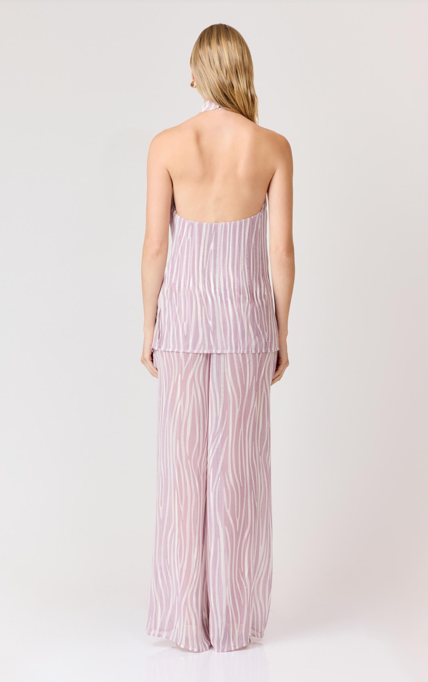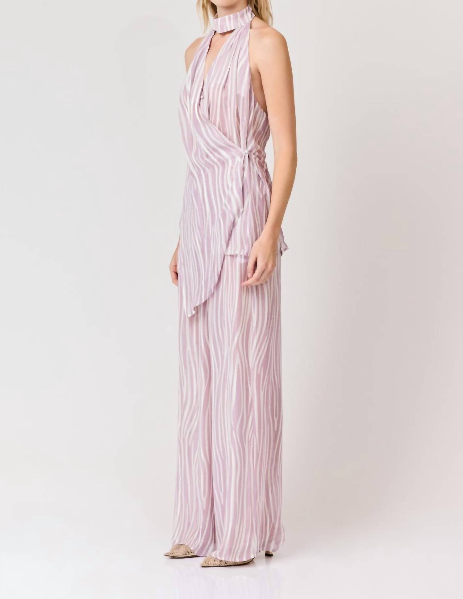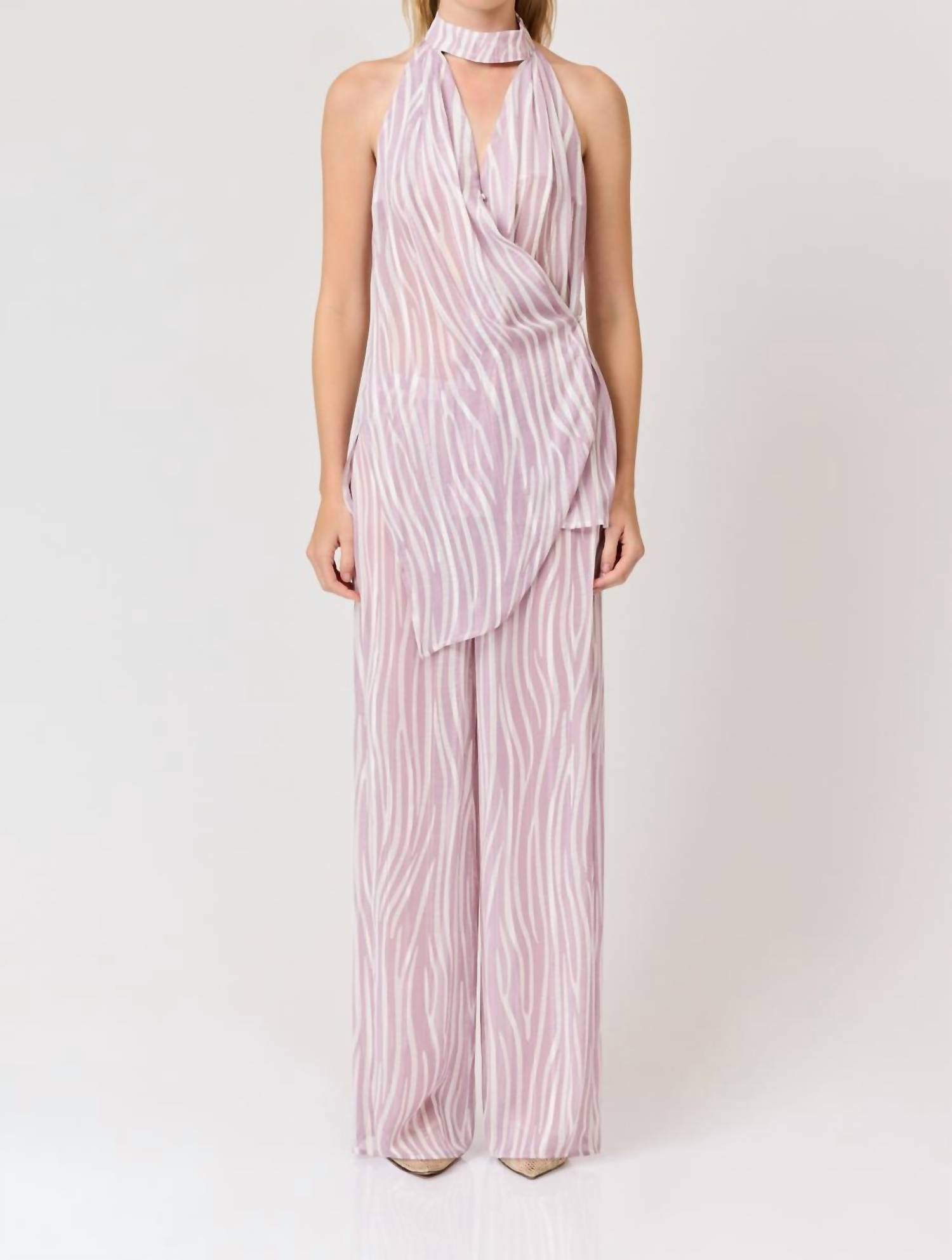 This straightleg pant is both stylish and comfortable. Did we mention the fit is perfection? Meet the Zuri Bottom by Curaae, a chic addition to any minimalist summer wardrobe with its striking lilac and white zebra print. These semi-sheer, relaxed fit pants feature a straight leg style with a convenient side zip and hook and eye closure. For a customized fit, there's also a drawstring at the waist. Perfect for a dinner party, this piece seamlessly blends elegance with comfort.