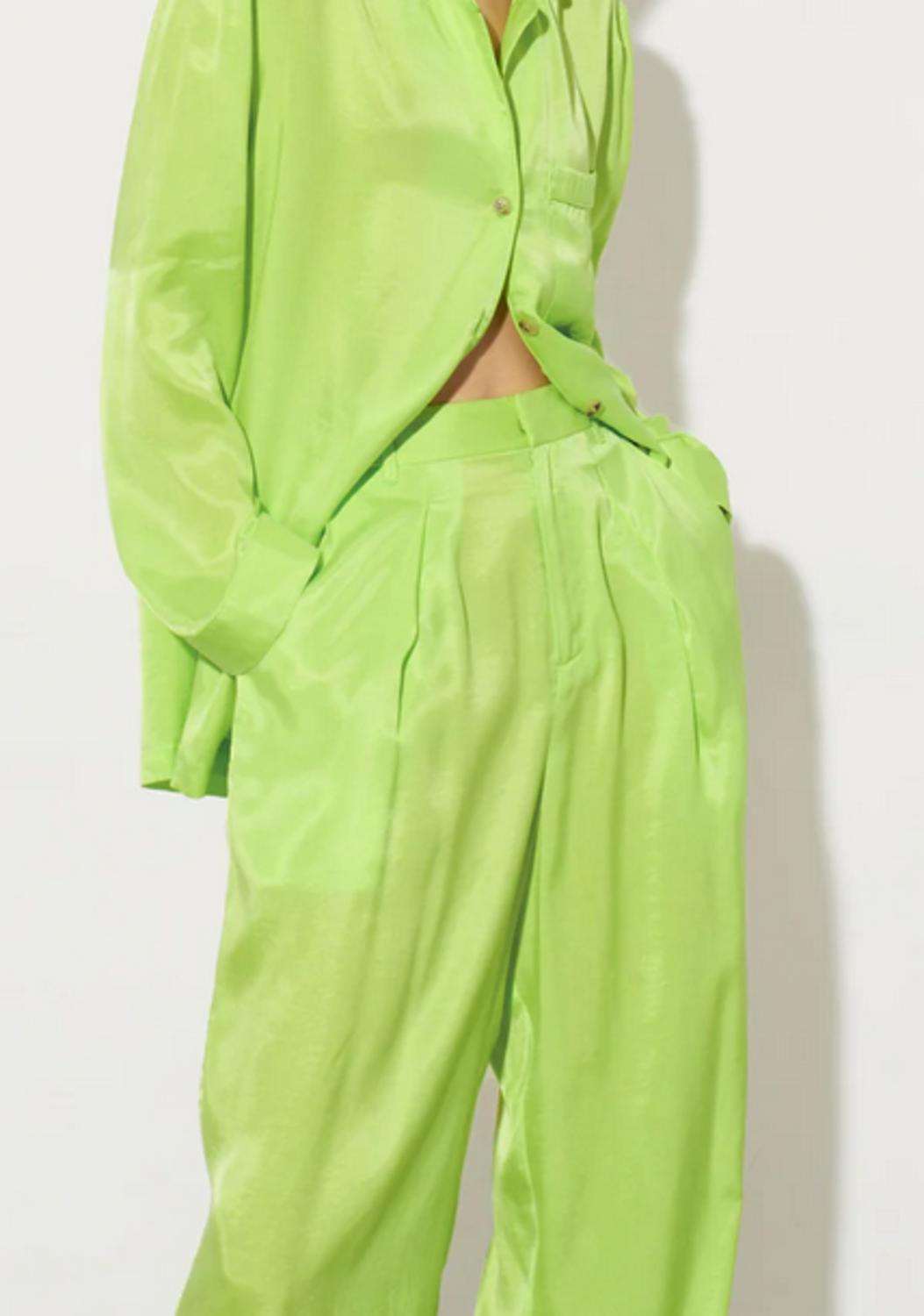This straightleg pant is both stylish and comfortable. Did we mention the fit is perfection? Elevate your ensemble with the Marella Straight Leg Pants by MARA HOFFMAN, the perfect blend of elegance and comfort. Designed with a high waist and relaxed fit, these pants boast a chic straight leg style and are adorned with side pockets, belt loops, and a front zipper featuring a hook-and-eye closure. Crafted from 100% TENCEL Lyocell with a smooth satin finish in striking chartreuse, they embrace both sustainability and luxury. Dimensions include a 14" waist and a 31" inseam, making them an ideal choice for a 90s-inspired holiday party look.