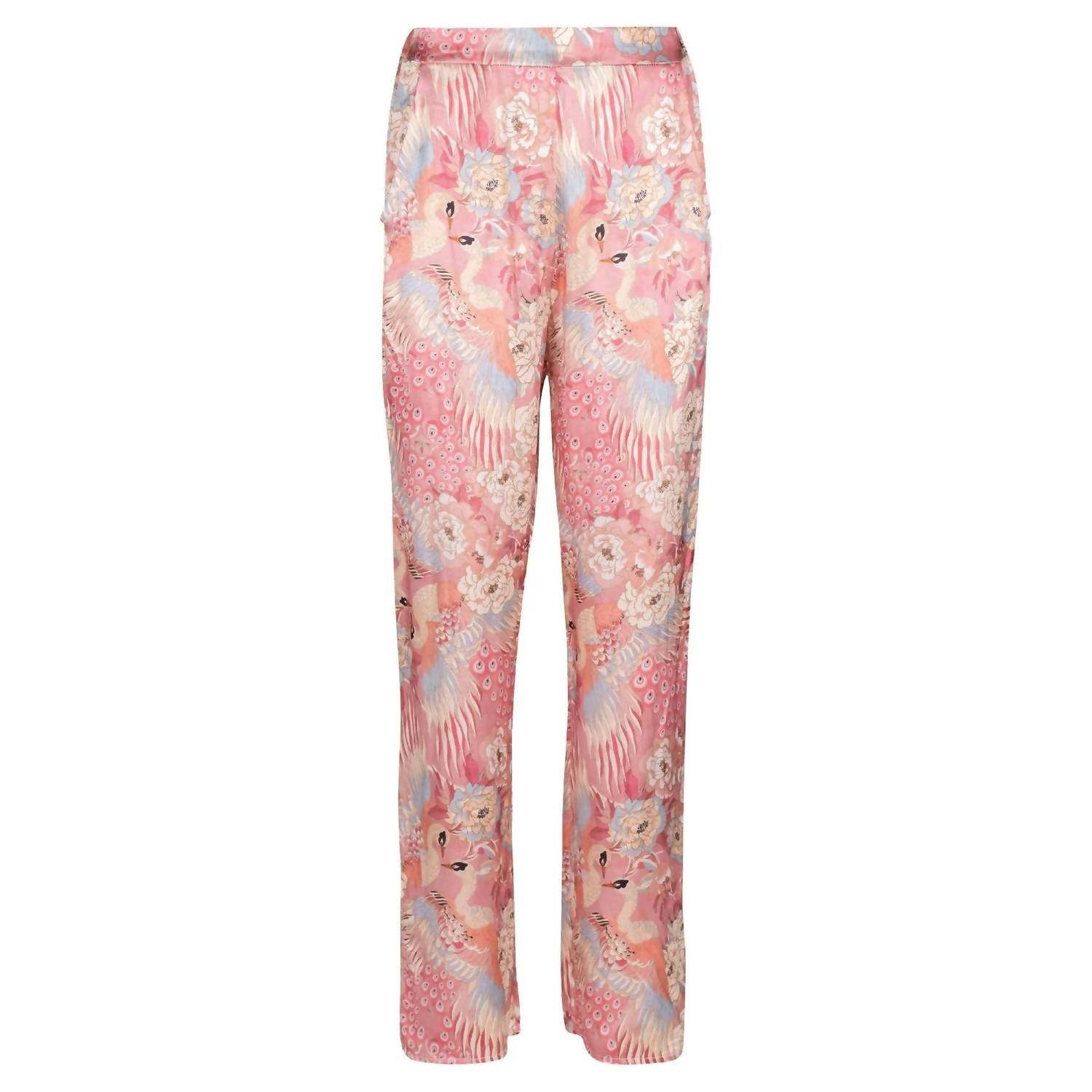A straightleg pant that workes season after season. Dress these up with your favorite blouse or keep it casual with your go-to tee. Meet the Astrid Women's Dodo Pants, a vibrant addition to any summer wardrobe. Crafted from luxurious silk, these pink, patterned pants offer a comfortable fit with their pull-on closure and straight-leg style. Perfect for standing out at any Thanksgiving or holiday party with their boho chic trend. With pockets included, they blend playful practicality with eye-catching style, specially designed for confident, fun-loving women.