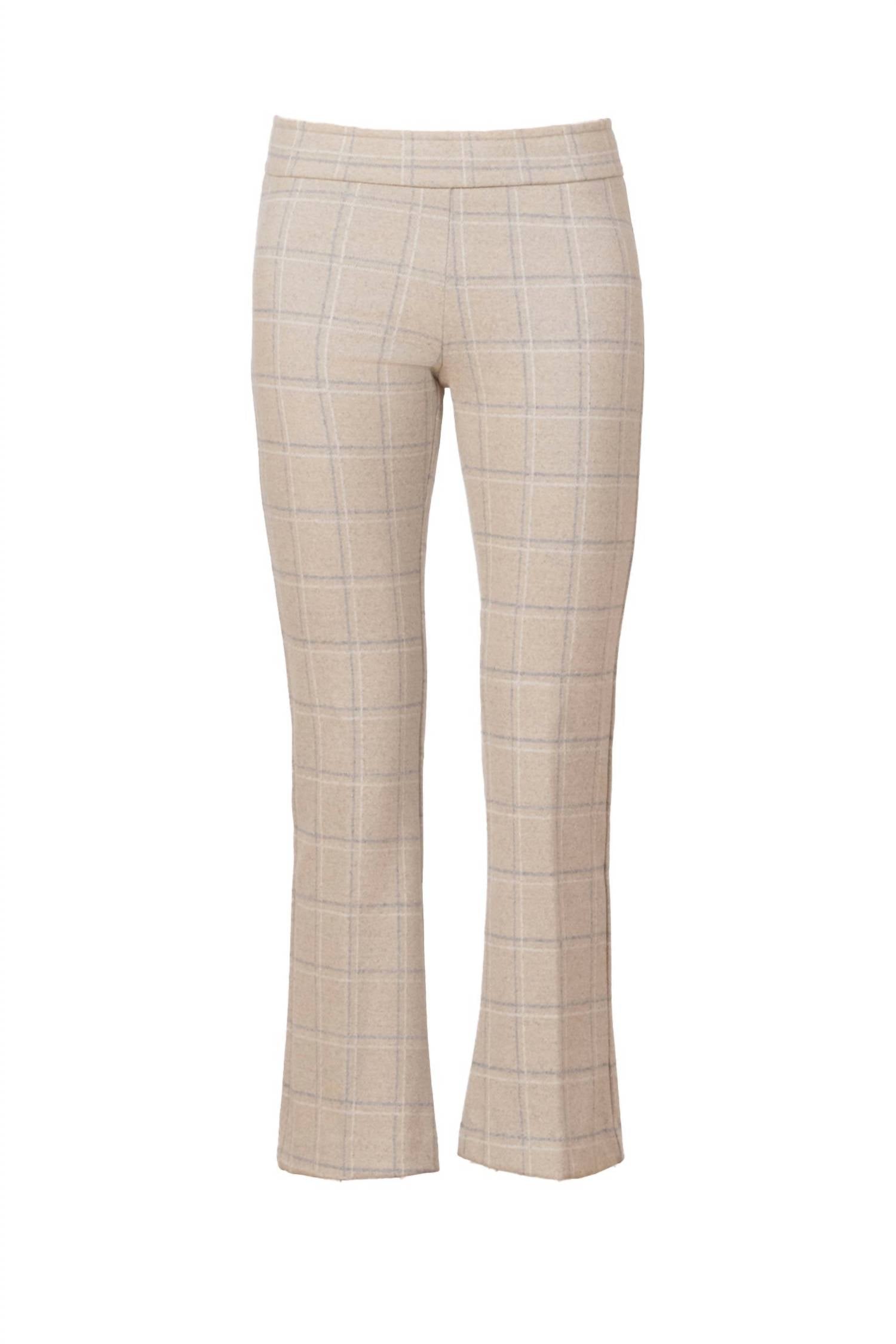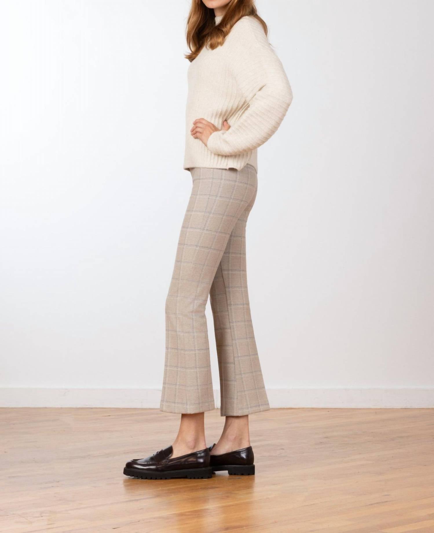 A straightleg pant that workes season after season. Dress these up with your favorite blouse or keep it casual with your go-to tee. The Leo Plaid Pant by Avenue Montaigne offers a sleek blend of comfort and style with its slim fit and classic straight-leg design. Featuring a convenient pull-on elasticated waistband, these pants are crafted from a lightweight flannel material with a beige plaid check pattern, perfect for adding a touch of sophistication to your winter wardrobe. With a mid-rise waist and 25” inseam, they are ideal for pairing with a variety of footwear, including heels, sneakers, or boots. For easy maintenance, these pants can be machine washed and tumble dried, ensuring convenience alongside chic versatility.
