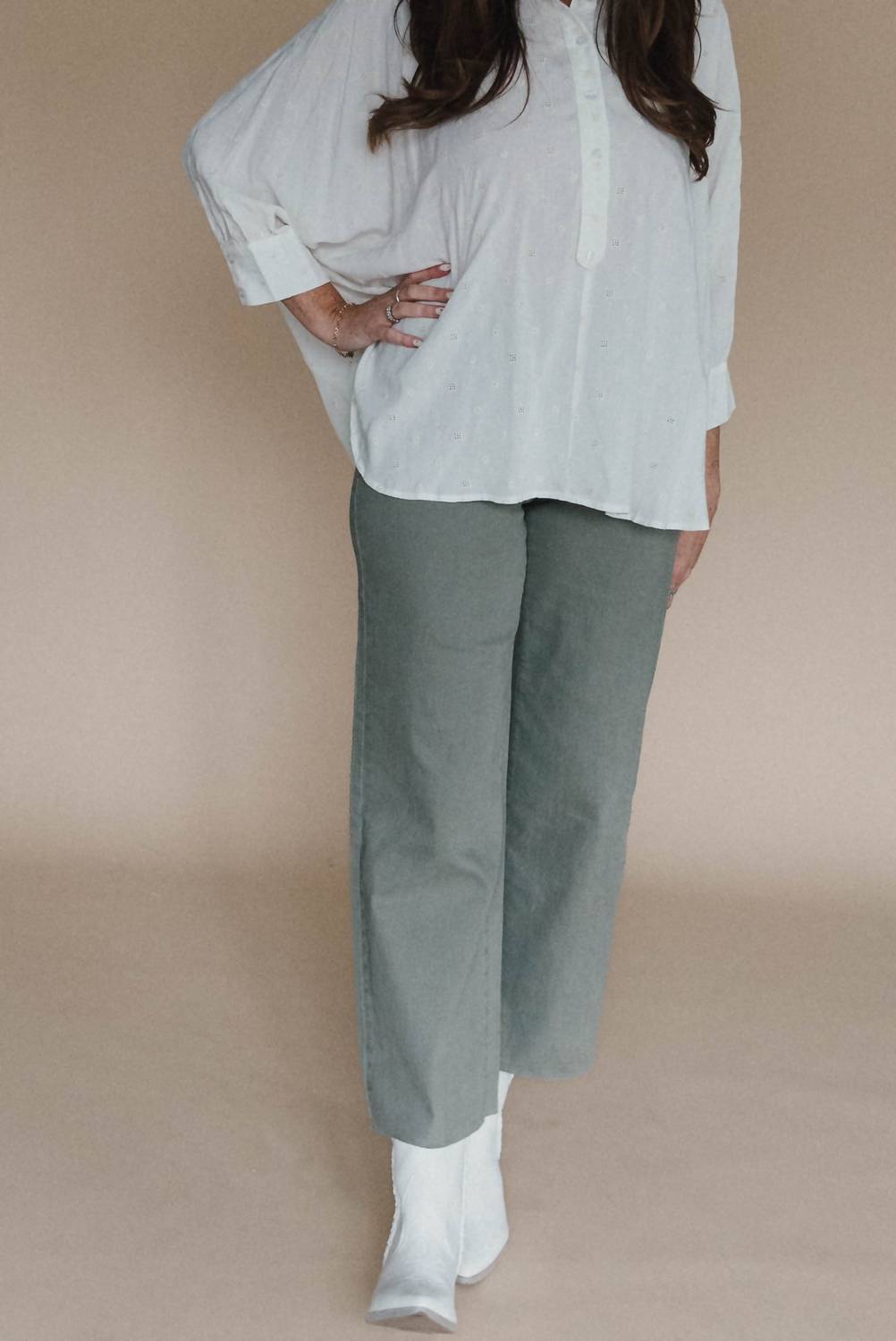 A perfectly tailored straight leg that you'll want in every color! Step out in fashionable ease with the Take The High Road Twill Pants by Easel, designed in a lived-in olive hue. These women's straight-leg pants feature a relaxed fit with wide legs and a high waist, providing a flattering silhouette. Crafted from a soft, stretchable cotton blend of 98% cotton and 2% spandex, they include a convenient button closure and pockets for practicality. Perfect for vacations or spring outings, these pants combine comfort and style effortlessly, fitting sizes S(4-6), M(8-10), and L(12-14).