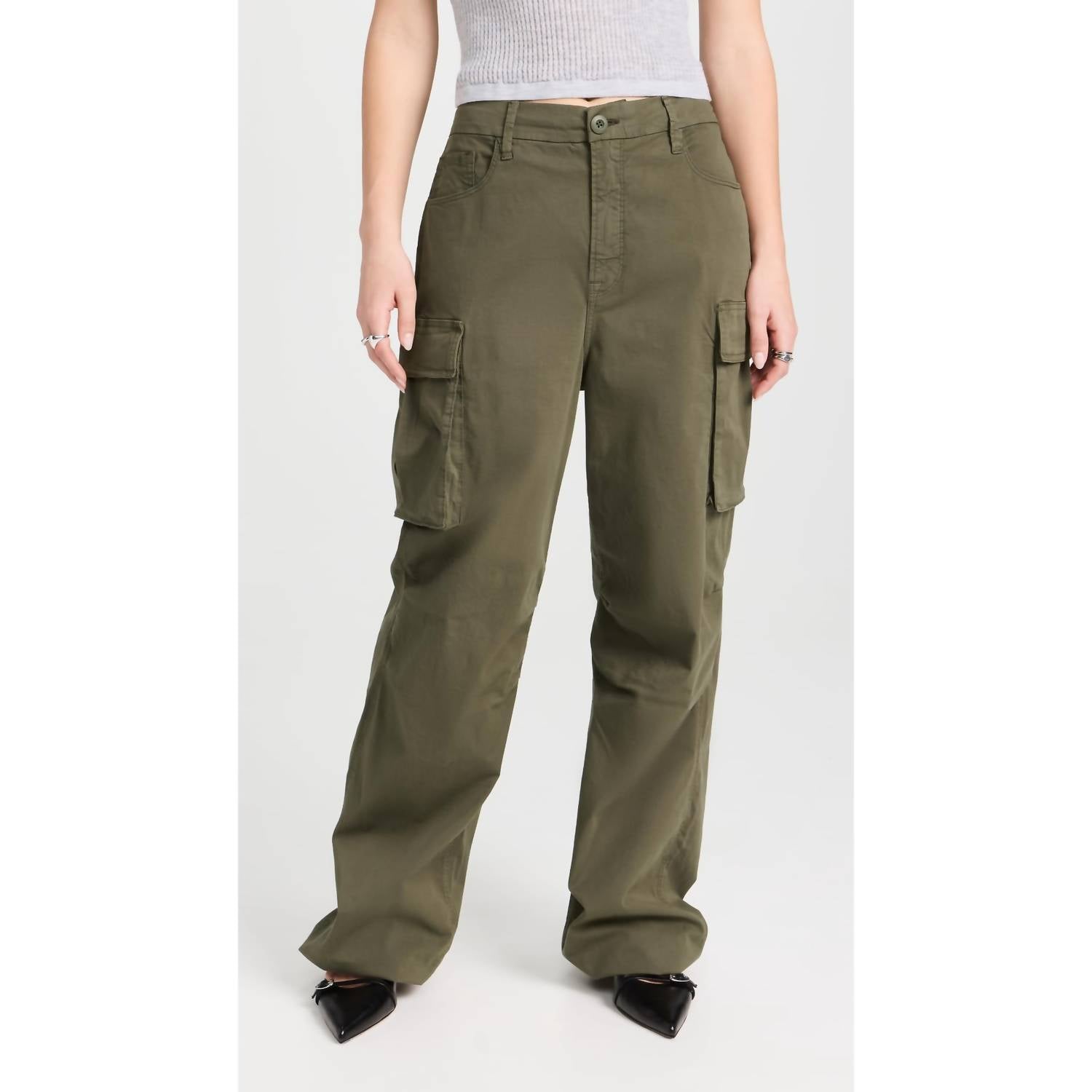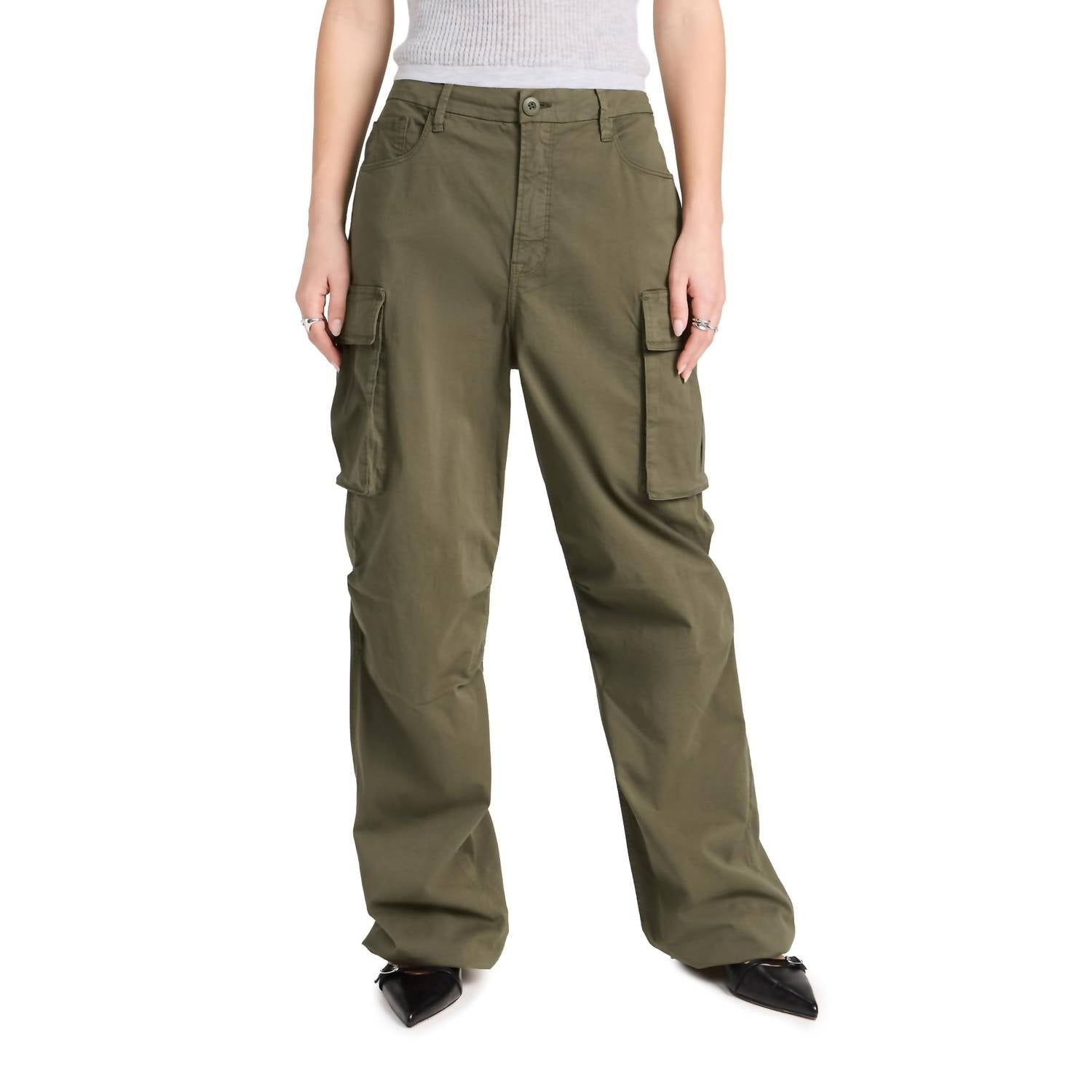 A straightleg pant that workes season after season. Dress these up with your favorite blouse or keep it casual with your go-to tee. Step out in style with the Baggy Cargo Pant by GOOD AMERICAN, offering a relaxed high-rise fit in fatigue green. Made from 100% lightweight, breathable cotton, these pants feature a baggy silhouette perfect for embracing the '90s fashion trend. With a zip fly and button closure, the design includes multiple cargo pockets adding both functionality and a trendy edge. Dimensions include a 13in rise and 33.5in inseam, making this piece ideal for spring travel adventures. For effortless care, simply machine wash these solid, straight-leg cargos.