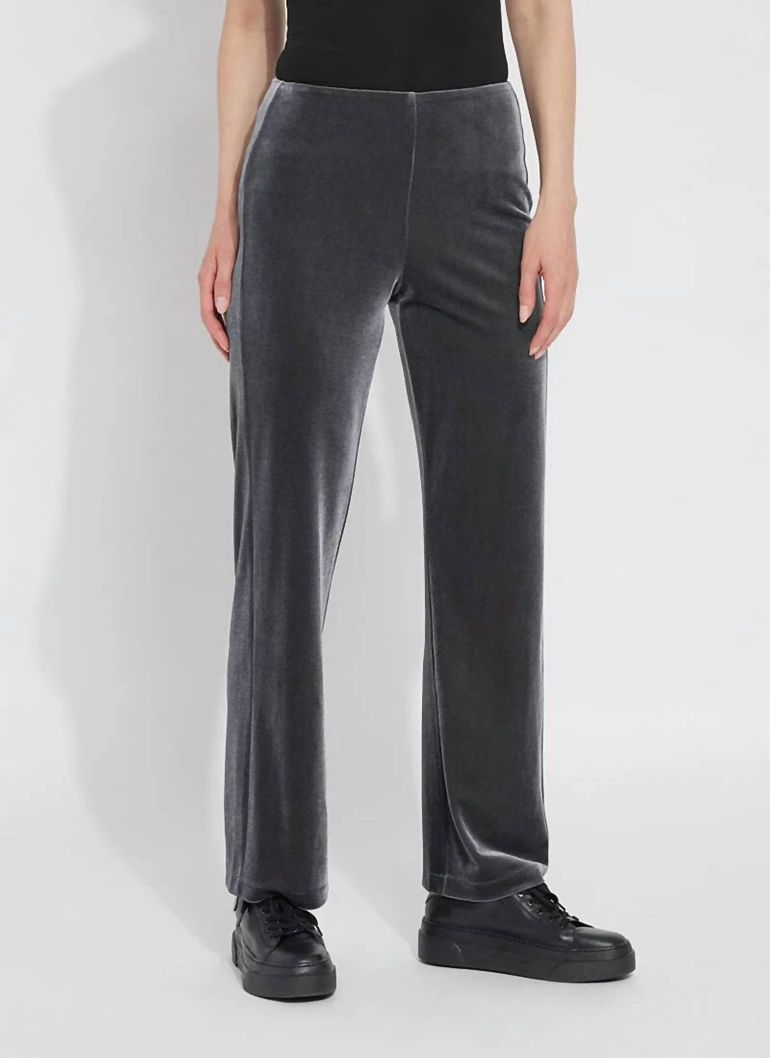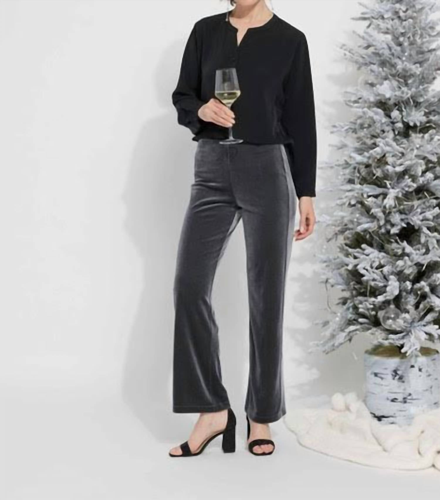 This straightleg pant is both stylish and comfortable. Did we mention the fit is perfection? Elevate your festive wardrobe with the Women's Lysse Velvet Pant in Charcoal, a sophisticated choice for any dinner party. These classic fit pants feature a timeless wide leg and high rise, constructed from luxurious 92% Polyester and 8% Spandex Stretch Velvet for an opulent feel. Designed without pockets for a sleek silhouette, they offer a 31.5" inseam and a concealed patented waistband for a smooth, flattering fit. With a pull-on closure, these pants deliver unrivaled 4-way stretch and the signature Lysse Fit 360° Smoothing to skim the hips gracefully.