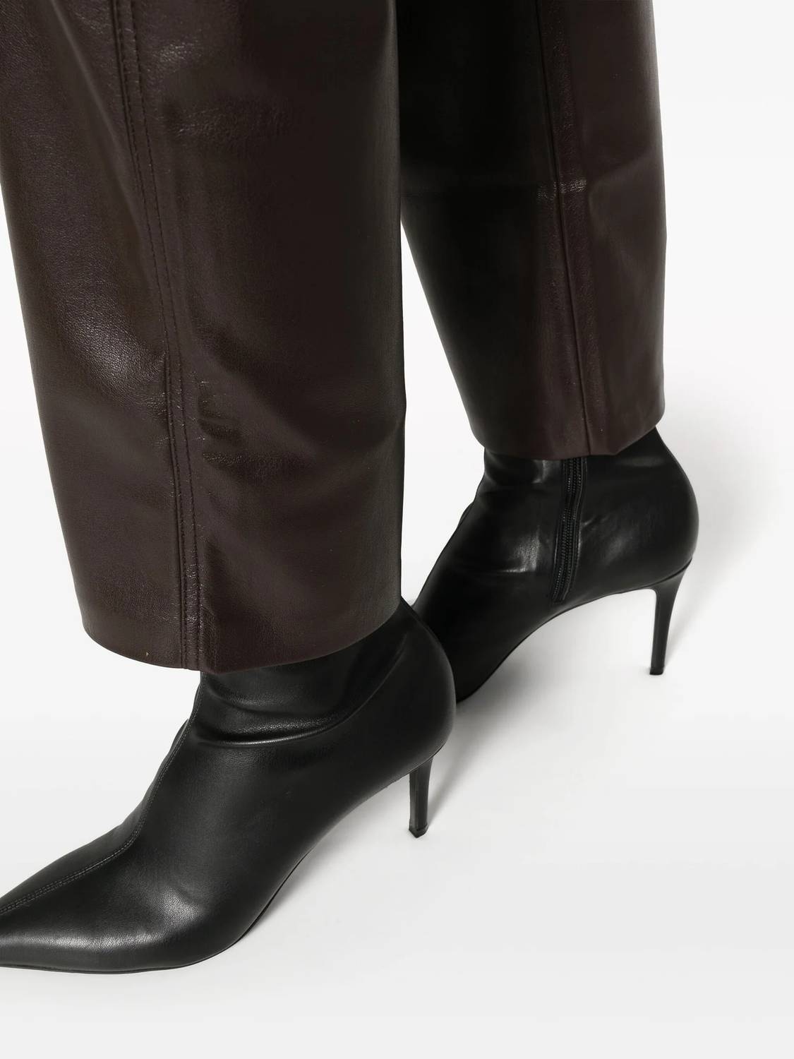 A perfectly tailored straight leg that you'll want in every color! Discover the Vinni Straight-leg 5-pocket Pants by Nanushka in a rich Coffee Ground hue, embodying minimalist elegance with a high-rise cut. These trousers are crafted from OKOBOR™ vegan leather—a sustainable choice exclusive to Nanushka—featuring a straight-leg design and classic five-pocket styling, including a logo-embossed rear patch. Enjoy the practicality of a zip fly with button fastening and belt loops, perfect for a versatile wardrobe staple. Composition: Recycled Polyester, Polyurethane. Closure: Zip closure. Care: Dry clean only.