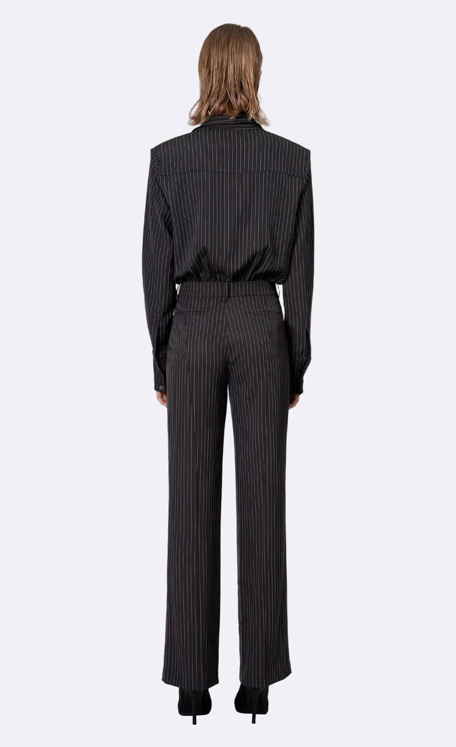 This straightleg pant is both stylish and comfortable. Did we mention the fit is perfection? Introducing the Women's Harlow Stripe Pant by Nonchalant Label, an exquisite choice for your evening events. Featuring a classic fit and straight leg style, these pants boast a chic gray and white stripe pattern. Equipped with practical pockets and a convenient zip closure, they blend functionality with minimalist elegance. Made for spring occasions, these pants require dry cleaning for best care. 96% polyester, 4% spandex
