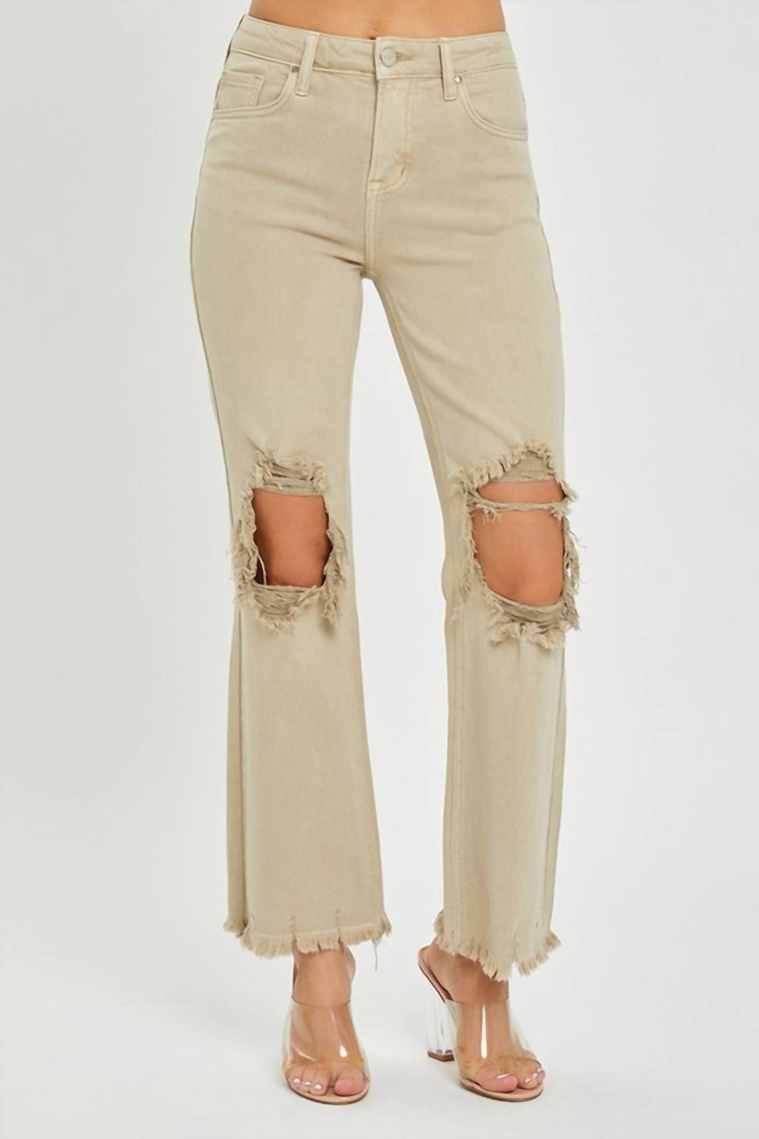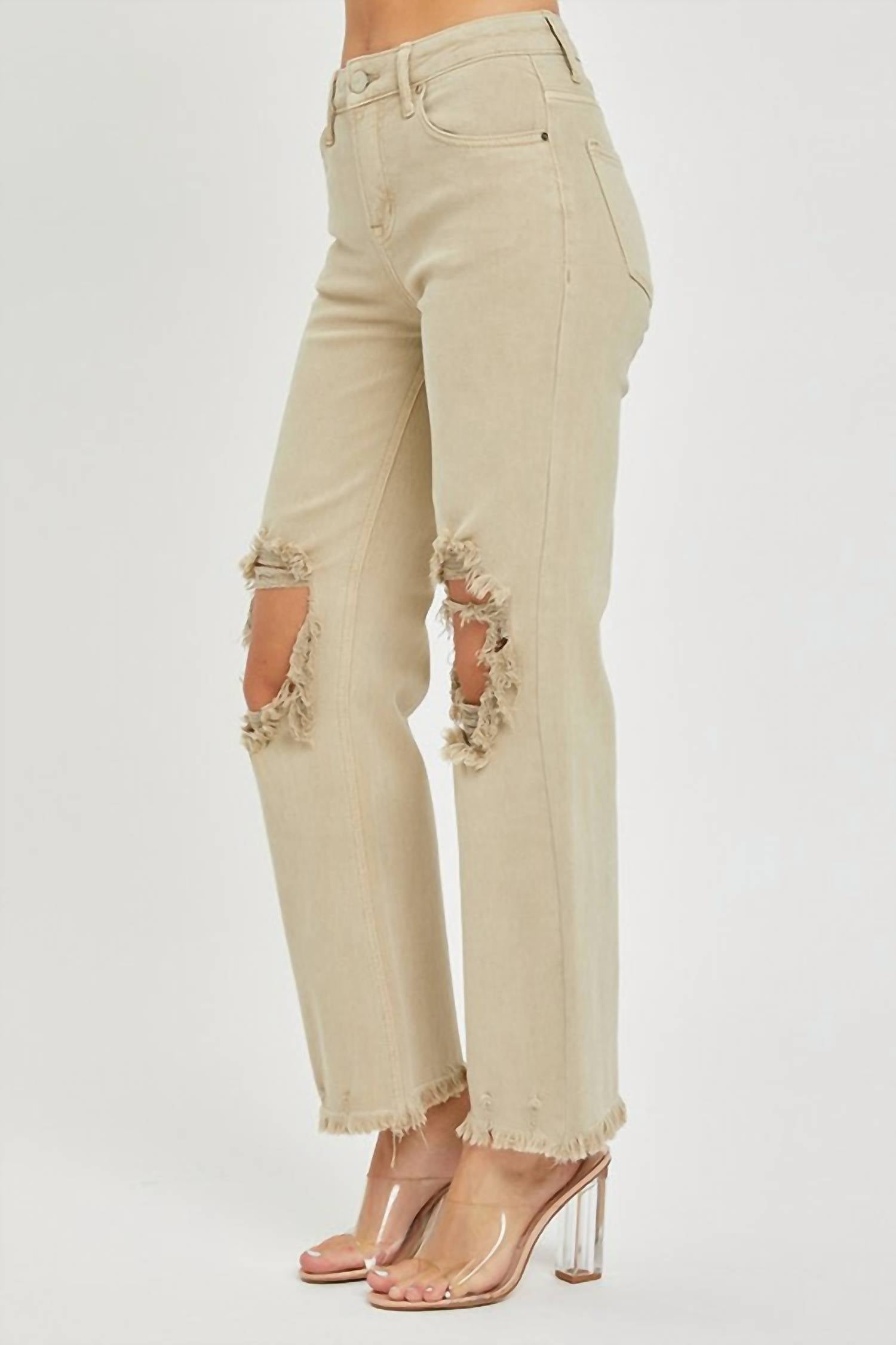 A straightleg pant that workes season after season. Dress these up with your favorite blouse or keep it casual with your go-to tee. Elevate your denim collection with RISEN's High Rise Distressed Knee Straight Leg Pants in a chic sand hue. These slim-fit pants are expertly crafted from a comfortable cotton blend consisting of 98% cotton and 2% spandex, and they feature a high-rise waist along with stylish distressed details at the knees. Designed with straight leg styling, they offer practicality with pockets and secure with a zip closure. Perfect for spring holidays or casual outings, these pants bring a touch of sophistication to any look.