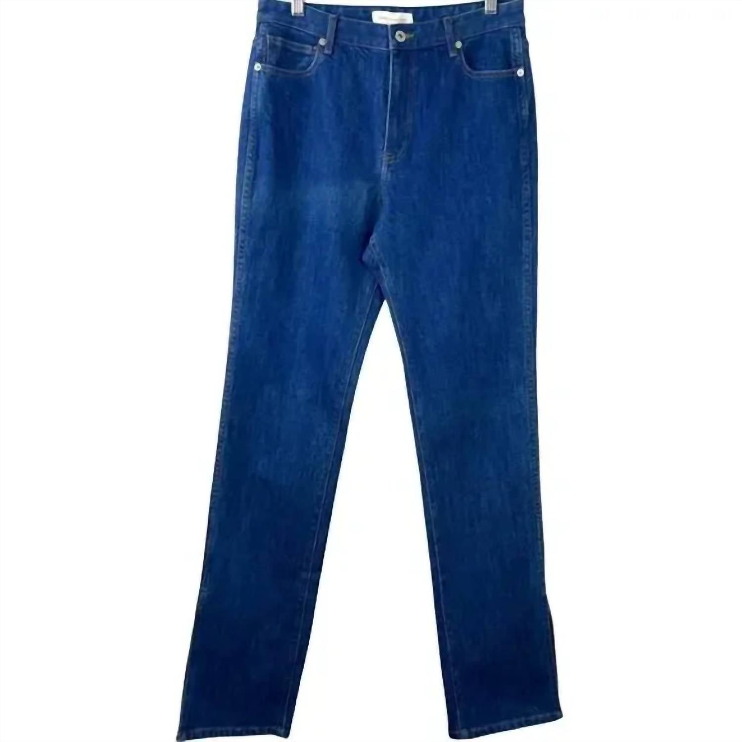 A perfectly tailored straight leg that you'll want in every color! Embrace effortless style with the Women's Denim With Slit Pants by Something Navy, crafted in a versatile indigo shade. These solid, straight-leg pants feature a cotton blend composition, offering both comfort and flexibility. Designed with a button and zipper closure, the pants include side hem-slits for added flair. Ideal for a streetwear-inspired dinner party look, they are machine washable and should be laid flat to dry.