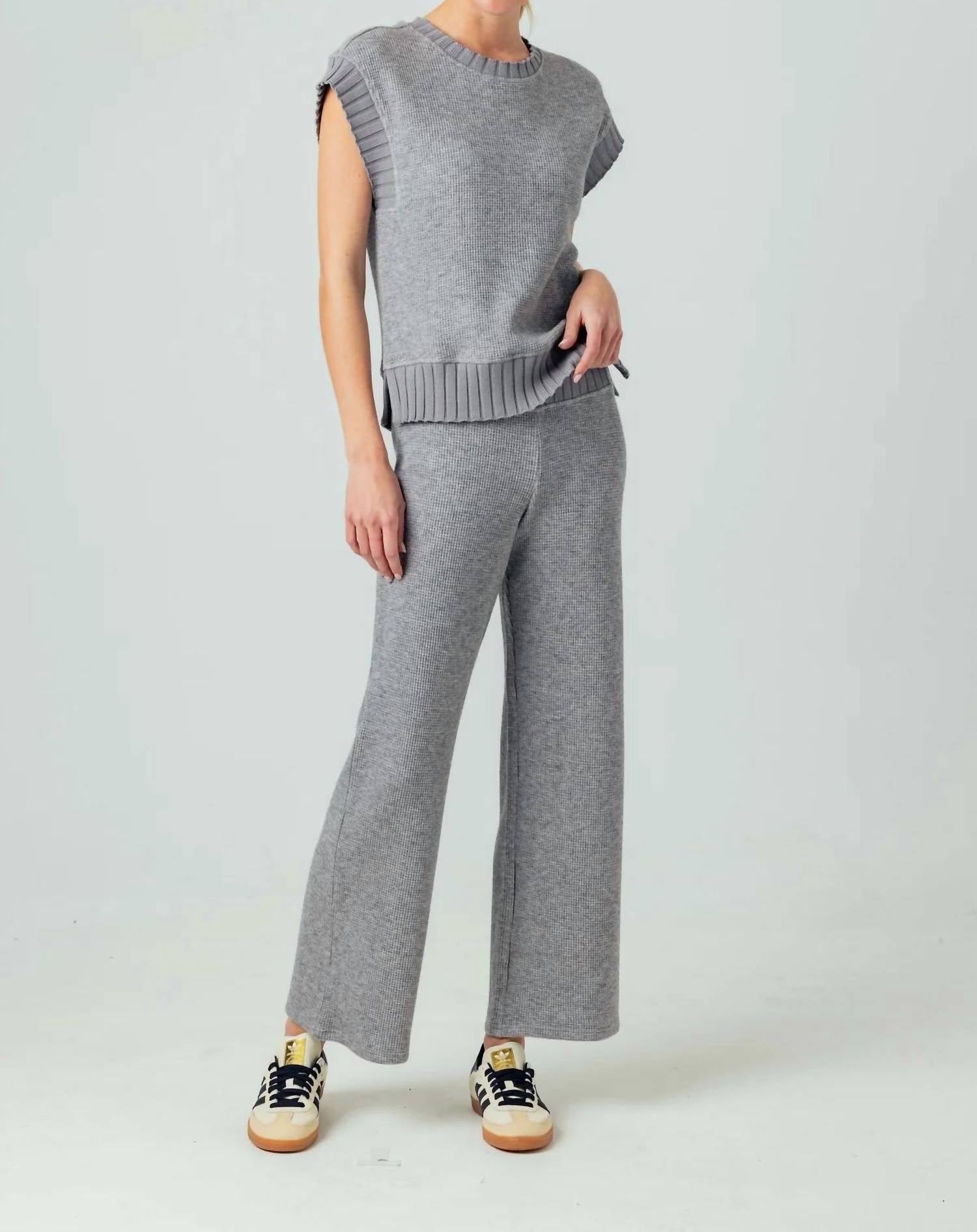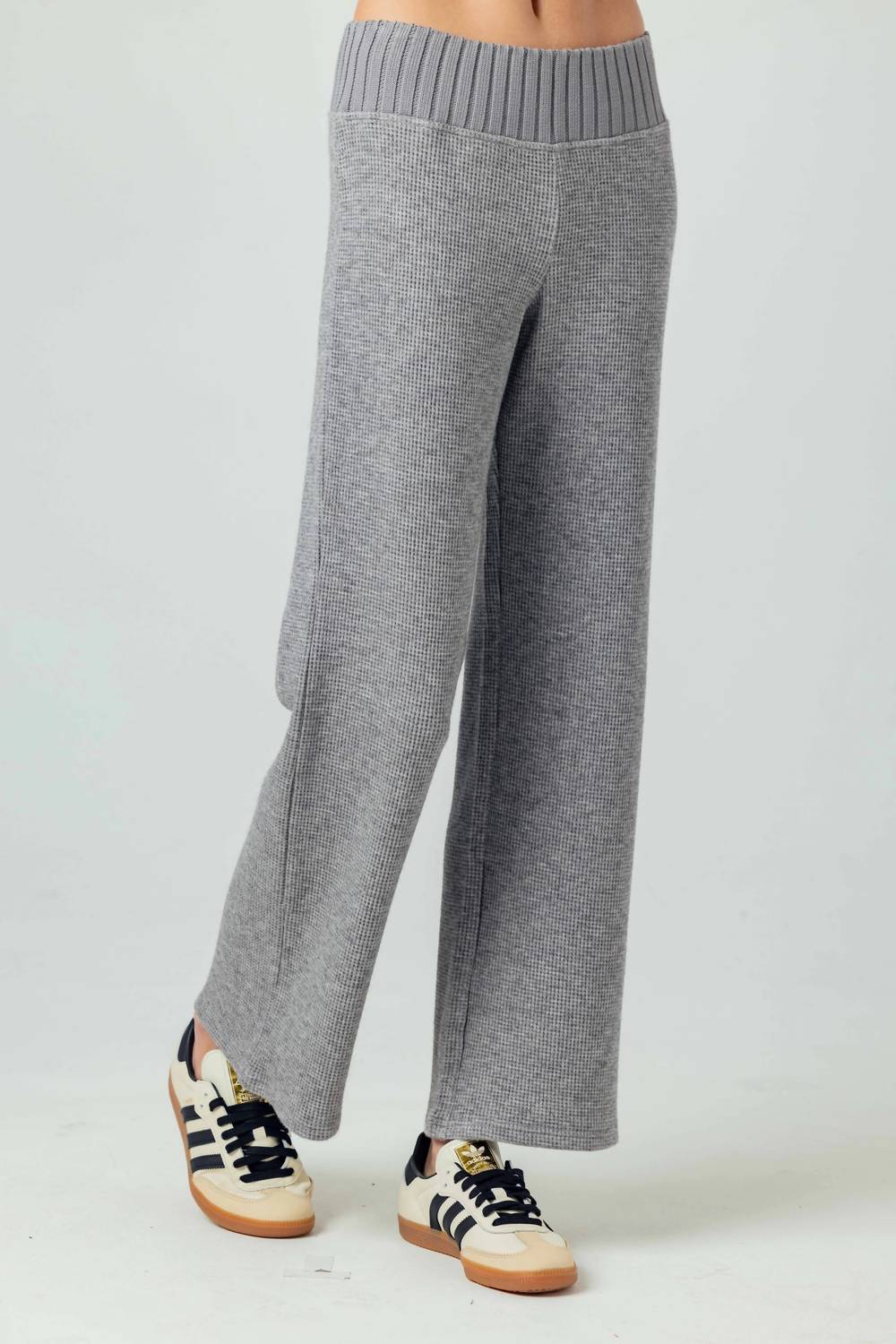 A straightleg pant that workes season after season. Dress these up with your favorite blouse or keep it casual with your go-to tee. Discover the Sundays Thermal Thalia Pants in chic Grey, a minimalist must-have for your Spring vacation wardrobe. These women's pants offer a comfortable pull-on fit with a sweater-rib waistband and solid pattern, crafted from a cozy Cotton Blend of 60% polyester and 40% cotton. The slimming silhouette flatters through the hips and relaxes into a straight leg with a slightly cropped inseam of 30.5", landing just at the ankle. Care for these pants with ease using machine wash on cold delicate and tumble dry low.