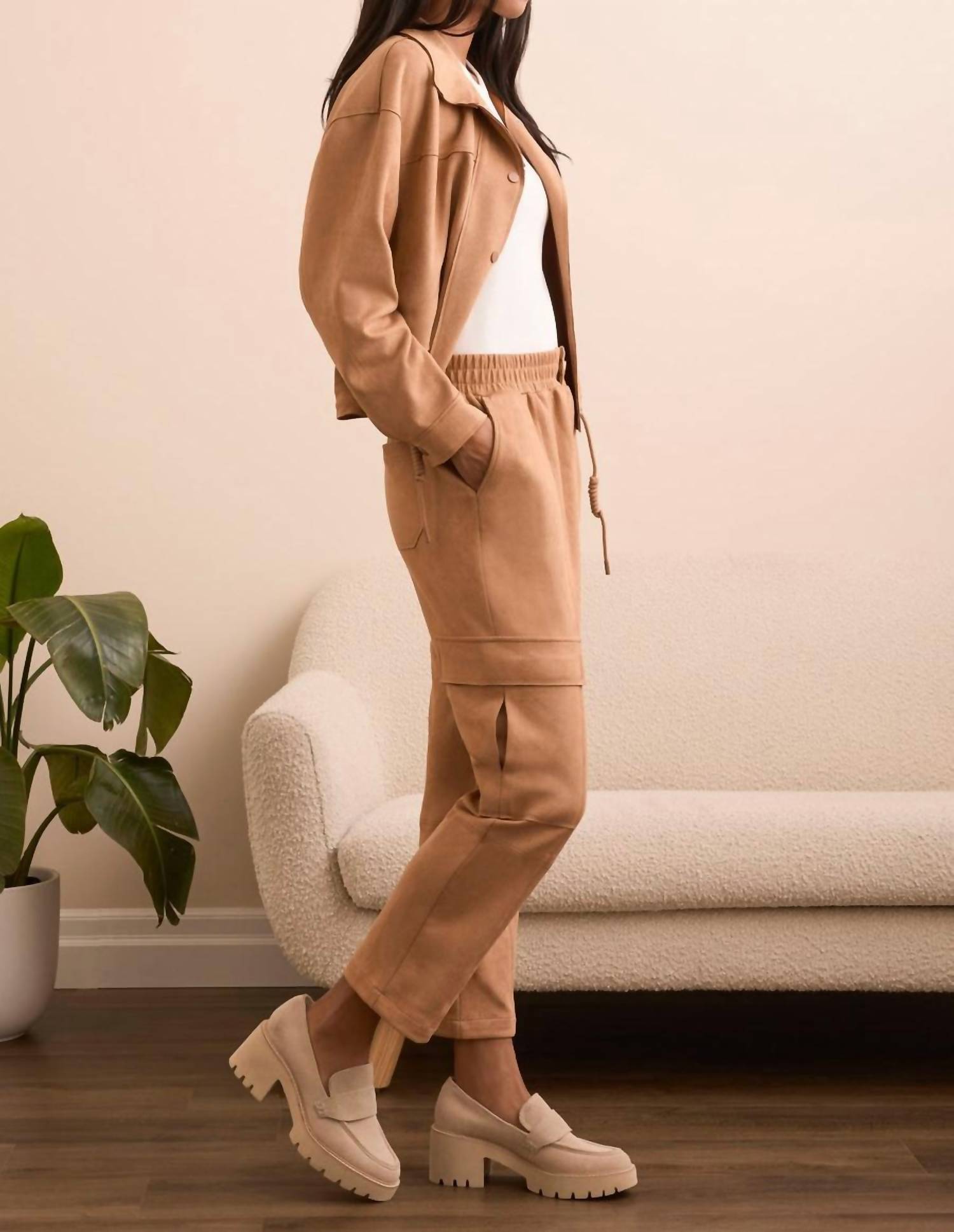 Tribal - Faux Suede Cargo Elastic Waist Pants